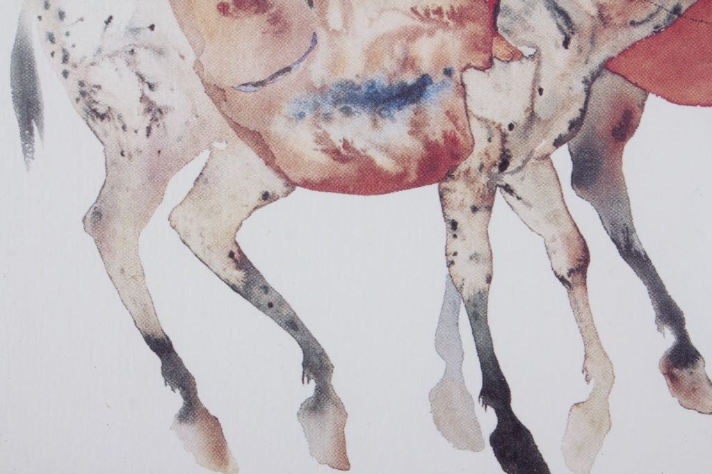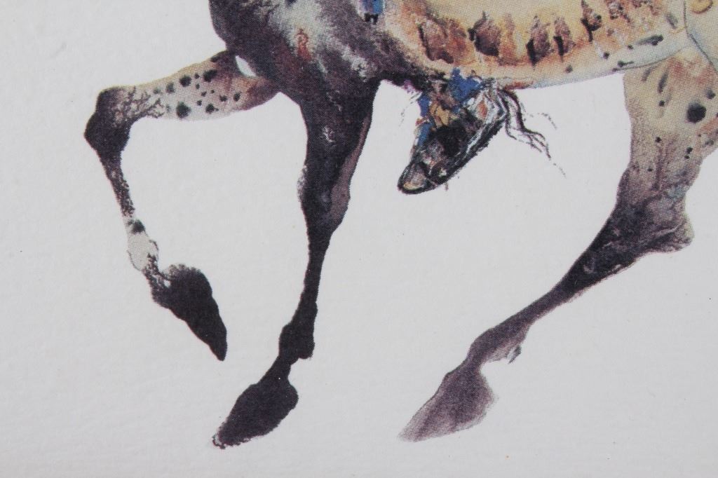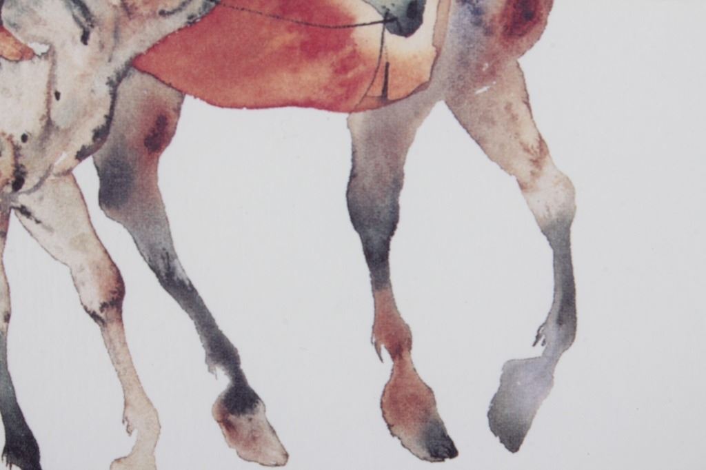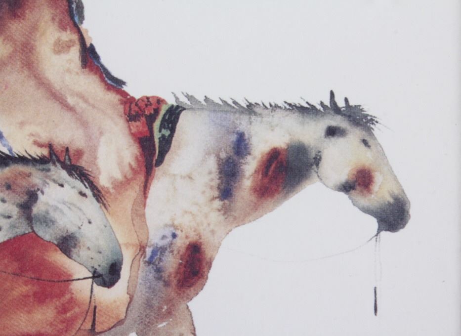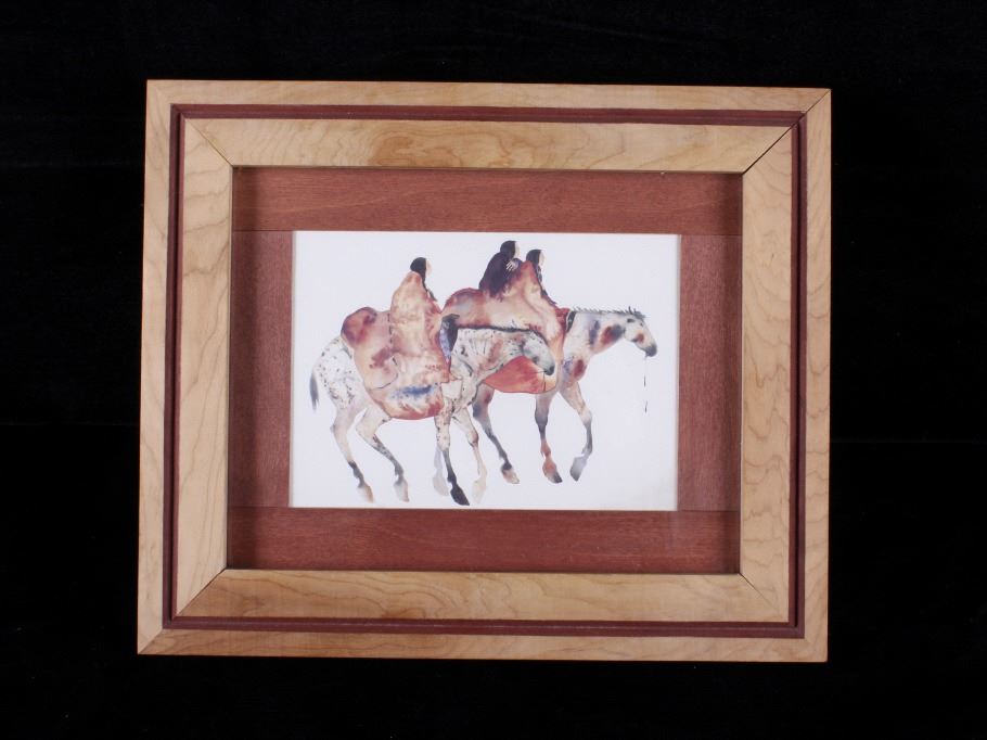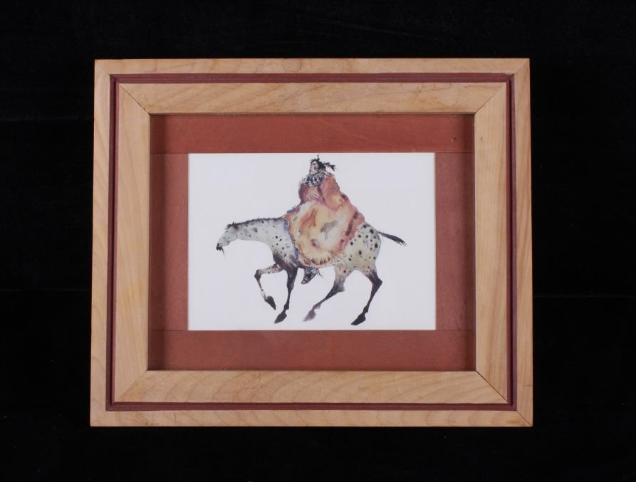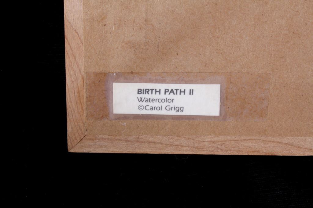 Offered in this lot we have these two Carol Griggs Native American Watercolor Lithograph. Carol Griggs is a self taught Cherokee painter living in southern Oregon and is known for her paintings horses and Native American women primarily in watercolors. The first painting, titled "Birth Path II", shows three Native American women on horseback all wrapped to keep warm in blankets. The second, titled "Wearing The Buffalo Robes", shows a Native American man on horseback wrapped in a tanned and painted buffalo hide. These lithographs show excellent condition. The visible art measures 4 3/4" tall by 6 3/4" wide. The frames both measure 10" tall by 12" wide.