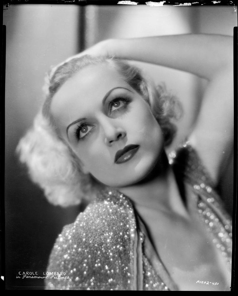Black-and-white 8 x 10 in. camera negative on nitrate film of Carole Lombard by Eugene Robert Richee; with EASTMAN NITRATE etched on the border, P1202-480 in India ink and retouching. Very good; with smudging at the lower right, waviness and mounting hole at the upper corner tips.