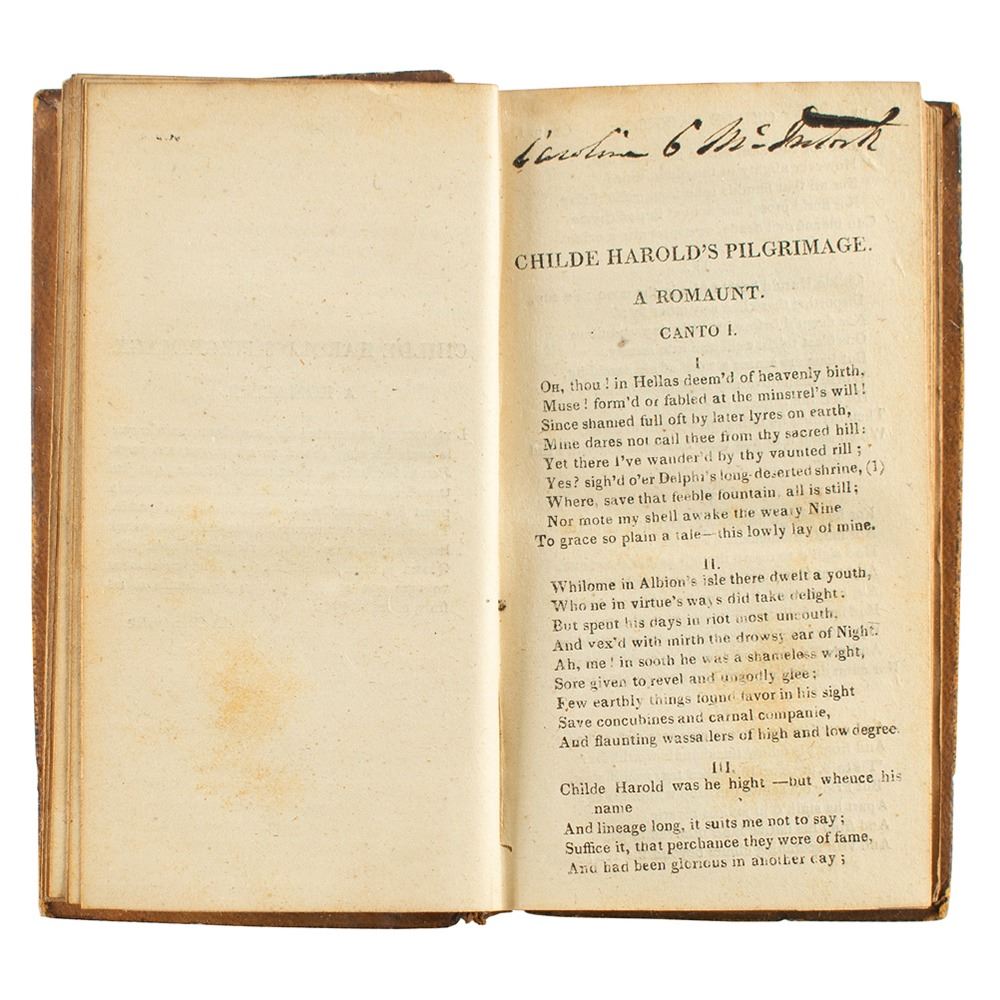 Volume I. Signed as "Caroline C. McIntosh" on p. 9, the first page of Childe Harold's Pilgrimage