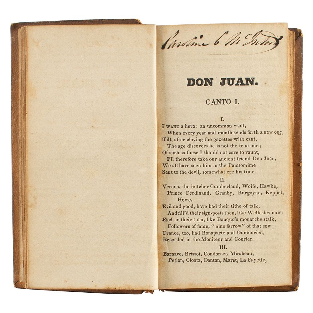 Volume VII. Signed as "Caroline C. McIntosh" on p. 5, the first page of Don Juan, Canto I
