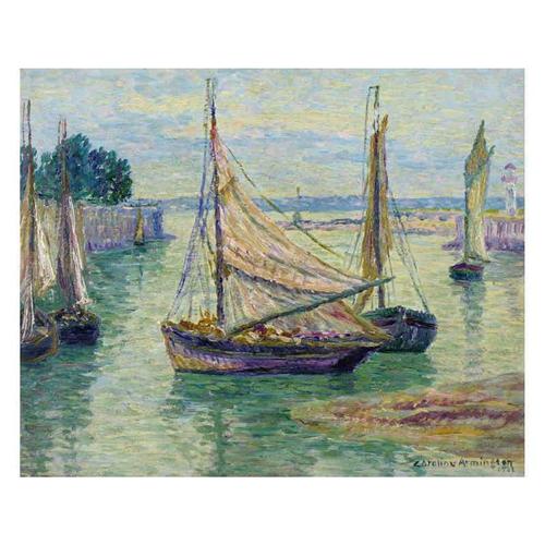 Canadian [1875-1939] BARQUES DE PECHE A HONFLEUR; 1922 oil on panel 8.5 x 10.5 in. (21.6 x 26.7 cm) signed, titled & dated Provenance: Masters Gallery, Calgary