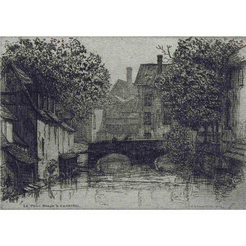 Canadian [1875-1939] LE PONT BOUJU A CHARTRES; 1926 etching on paper; ed. of 100 5 x 6.75 in. (12.5 x 17 cm) estate stamped signature; signed, titled & dated in the plate with LA RUE DU HALLAGE A ROUEN; 1920 etching on paper; ed. eprouve d'essai 6.75 x 5 in. (17 x 13 cm) signed, titled & editioned; initialed, titled & dated in the plate Lot of Two
