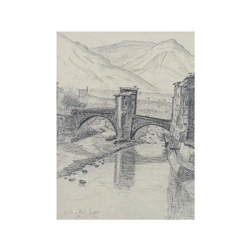 Canadian [1875-1939] LE VIEUX PONT, SOSPEL; 1934 pencil on paper 11.5 x 8.75 in. (29.2 x 22 cm) initialed, titled & dated