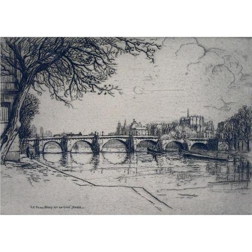 Canadian [1875-1939] HUNGERFORD BRIDGE, LONDON; 1927 etching on paper; 1st state, 1 print 7 x 9 in. (17.8 x 22.9 cm) signed & editioned; signed, titled & dated in the plate sold with LE PONT NEUF ET LA CITE, PARIS; 1921 etching and drypoint on paper; 2nd state, #1/12 6.5 x 9 in. (16.5 x 22.9 cm) signed & editioned; titled in the plate Lot of Two