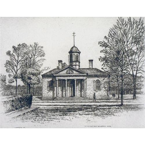 Canadian [1875-1939] THE OLD COURT HOUSE, WILLIAMSBURG, VIRGINIA; 1930 etching on paper; ed. #12/100 9.25 x 11.75 in. (23.5 x 29.8 cm) signed & editioned; signed, titled & dated in the plate sold with LAPLANDERS HUTS AT VAISALUOKTA, SWEDEN; 1928 etching and drypoint on paper; ed. #15/100 7 x 8.75 in. (17.8 x 22.2 cm) signed & editioned; signed, titled & dated in the plate Note Illustrated p. 63 "Caroline and Frank Armington, Canadian Painter-Etchers in Paris" ( Braide & Parke-Taylor).