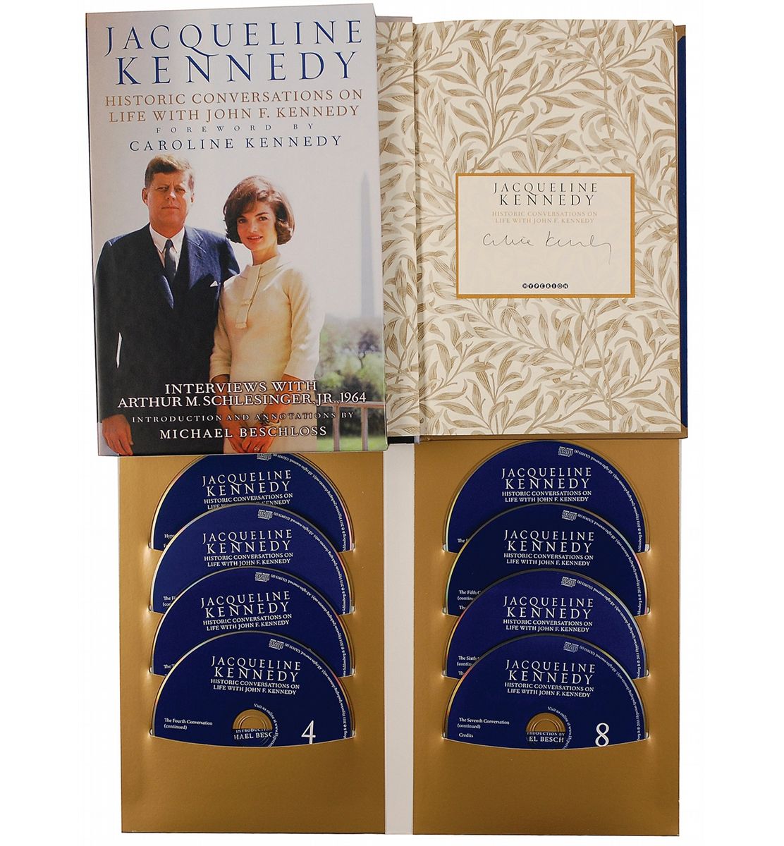 Signed book: Historic Conversations on Life with John F. Kennedy. First edition, first printing. NY: Hyperion, 2011. Hardcover with slipcase, 6.25 x 9.5, 368 pages. Signed in black ink on a bookplate affixed to the first free end page. Accompanied by the eight CDs of conversations. In very fine condition.