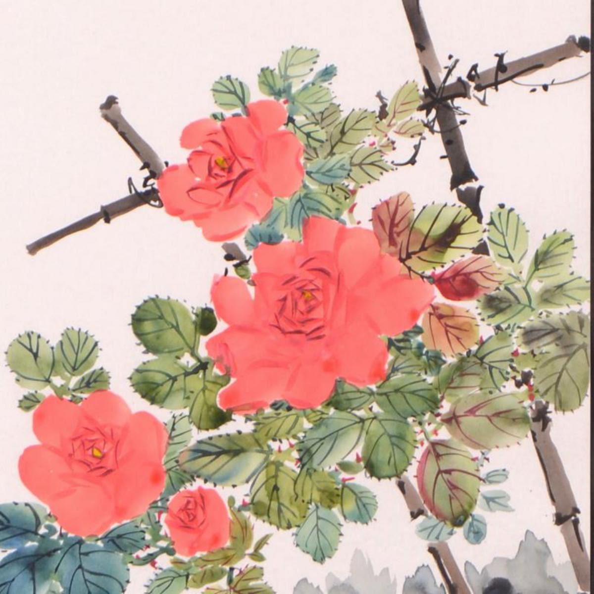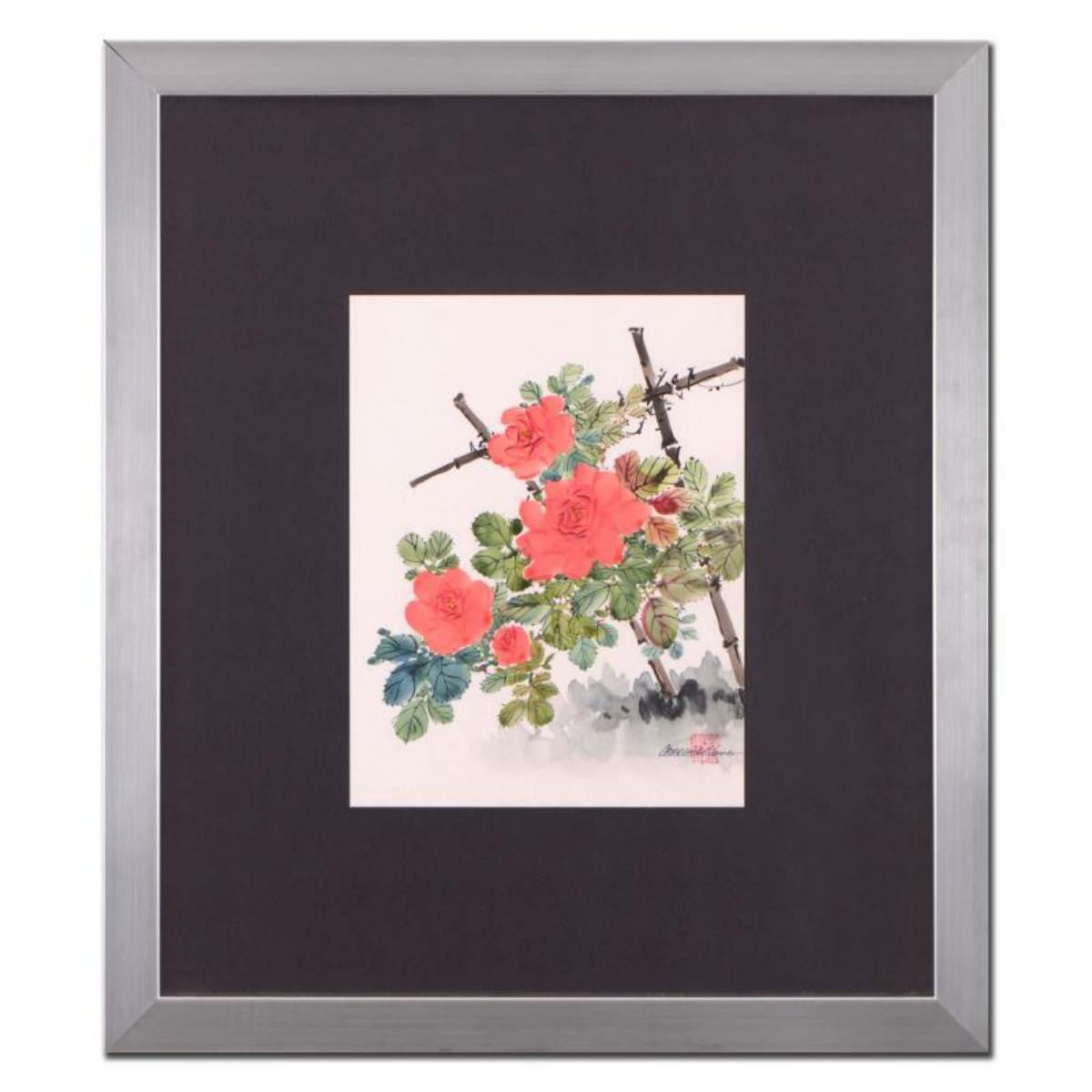 Caroline Young, "Floral III" Framed Original Gouache Painting on Mother of Pearl Paper, Hand Signed