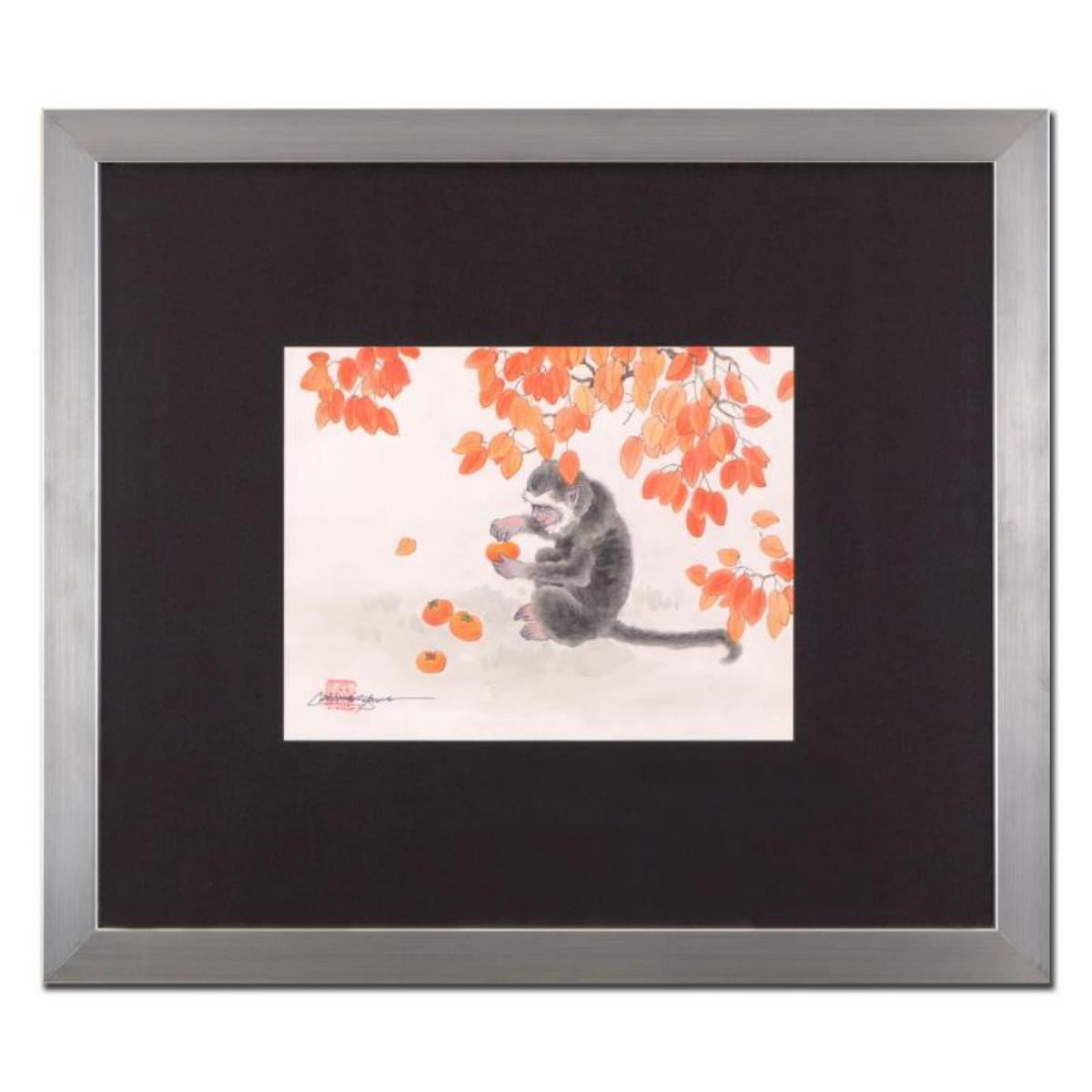 Caroline Young, "Lunchtime" Framed Original Gouache Painting on Mother of Pearl Paper, Hand Signed w