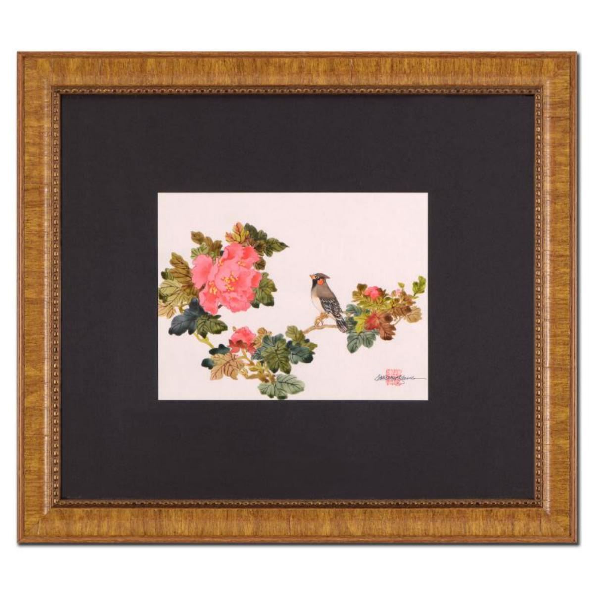 "Peaceful Morning II" is an original gouache painting on mother of pearl paper by Caroline Young, hand signed by the artist. This piece comes framed.Includes Certificate of Authenticity. Measures approx. 22" x 19" (frame), 11" x 8.5" (image). Reference #: 228646