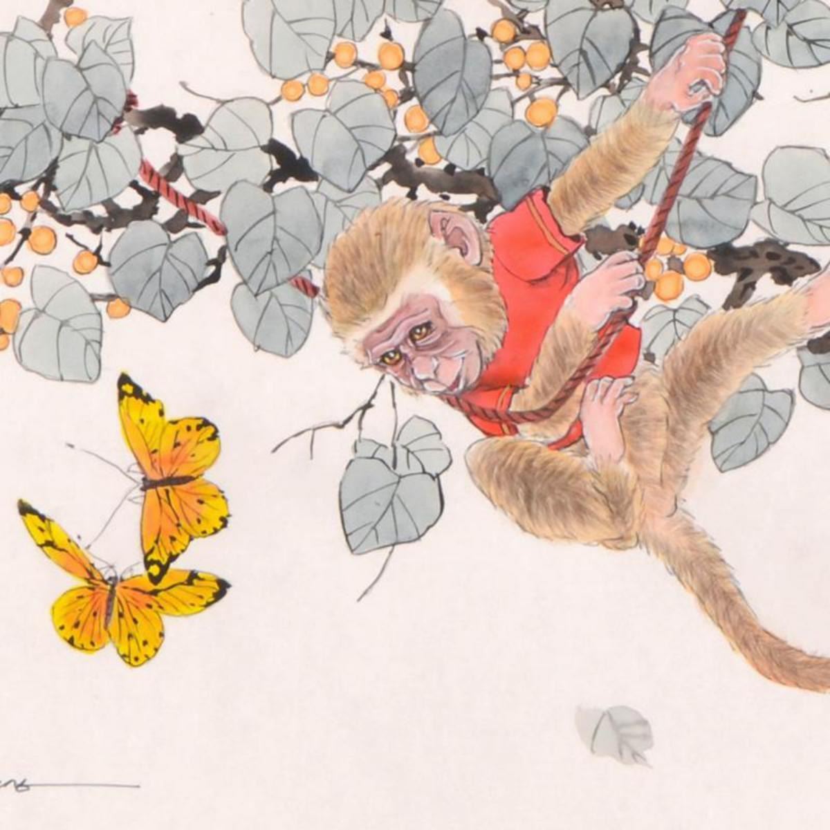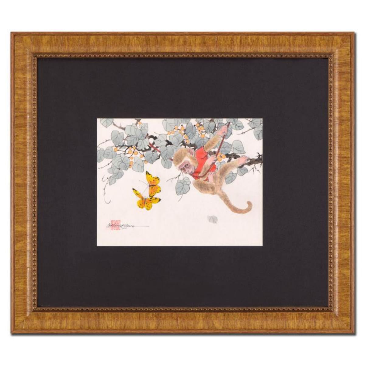 Caroline Young, "Playtime" Framed Original Gouache Painting on Mother of Pearl Paper, Hand Signed wi