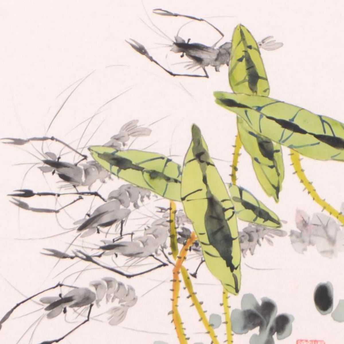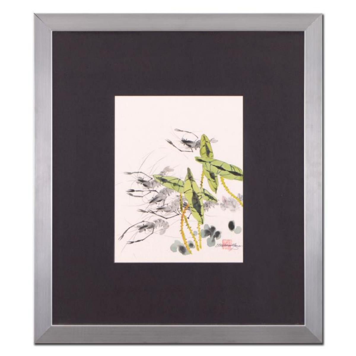 Caroline Young, "River Shrimp II" Framed Original Gouache Painting on Mother of Pearl Paper, Hand Si