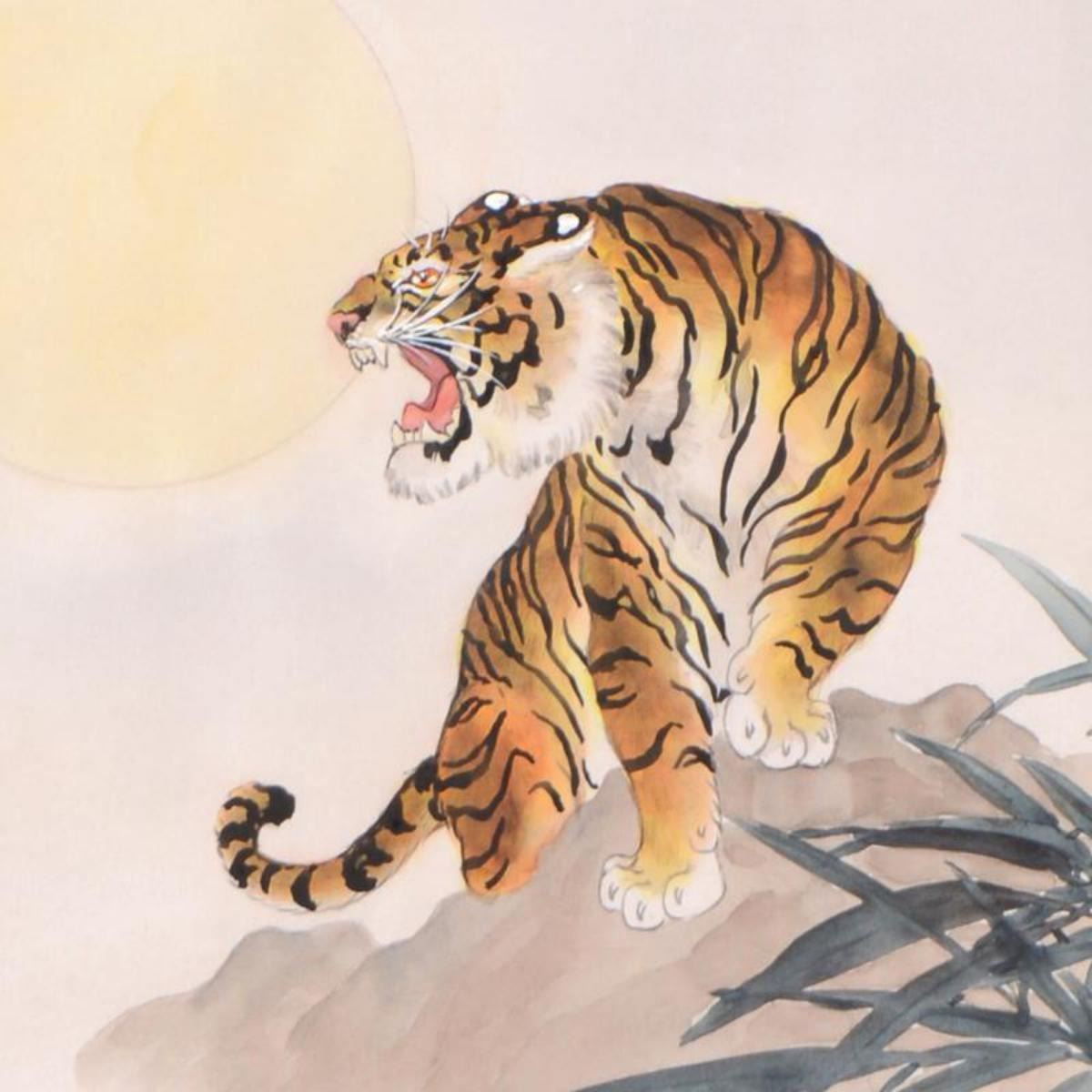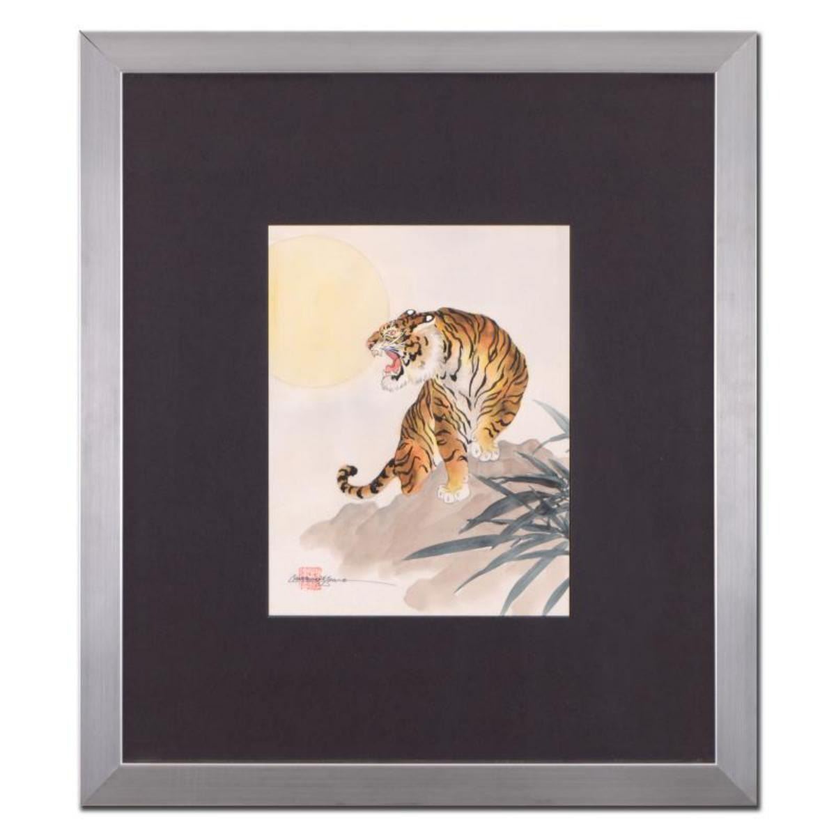 Caroline Young, "Tiger" Framed Original Gouache Painting on Mother of Pearl Paper, Hand Signed with