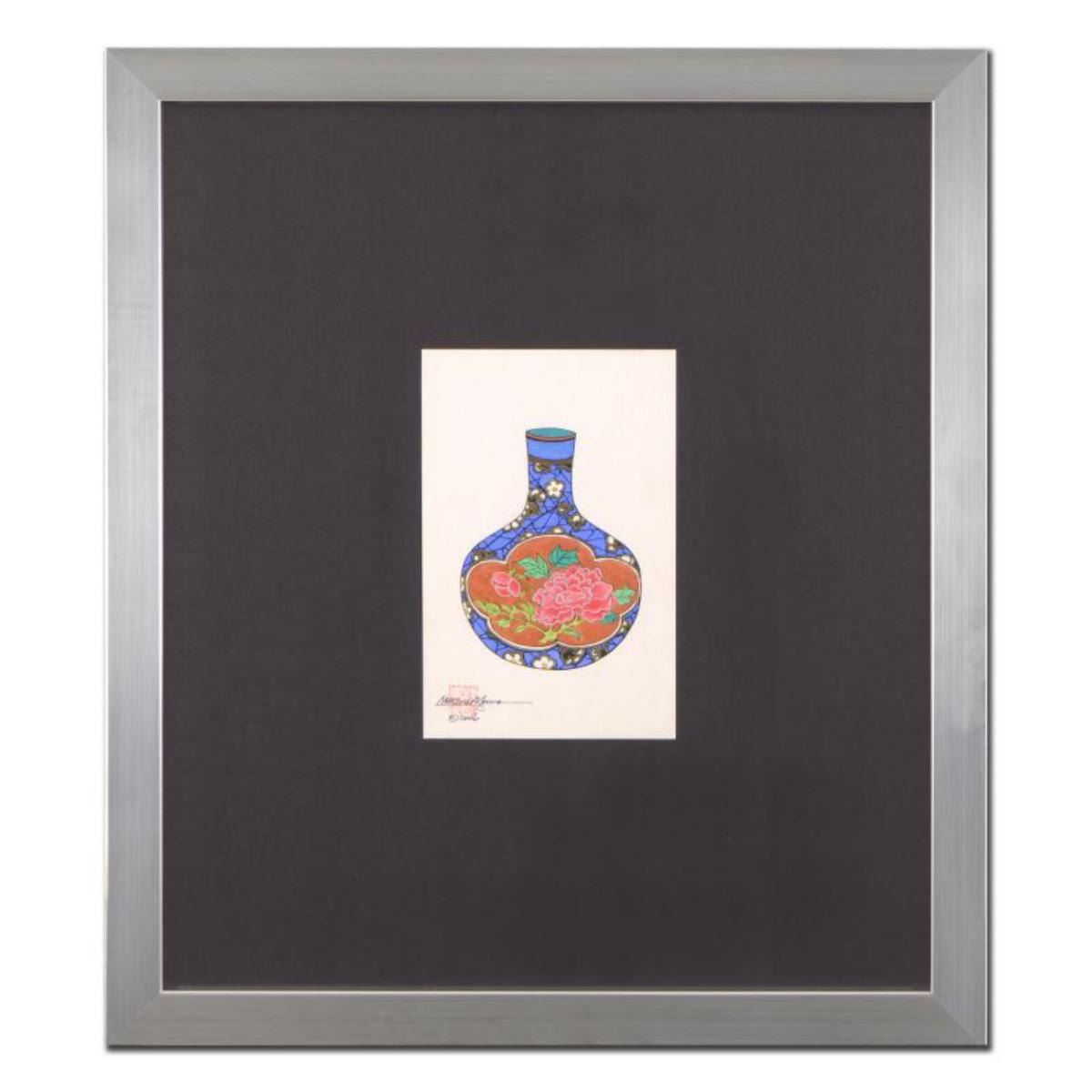 Caroline Young, "Vase III" Framed Original Gouache Painting on Mother of Pearl Paper, Hand Signed wi