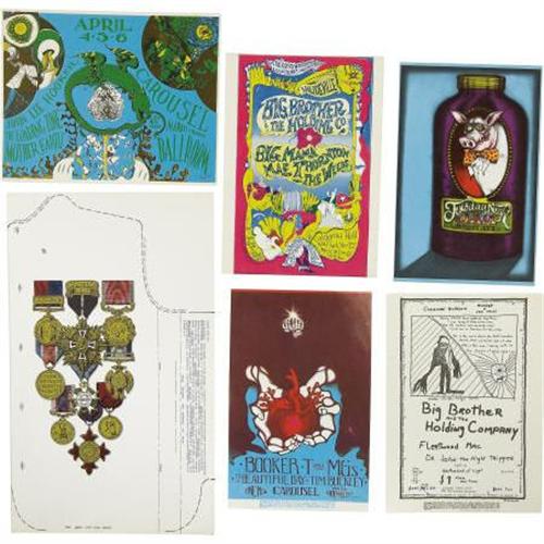 <B>Carousel Ballroom Concert Handbill Group (1968).</B></I> Cool 'n' colorful collection of handbills from the old Carousel Ballroom, including Big Brother and the Holding Company/Fleetwood Mac/Dr. John the Night Tripper ("Double Double Mojo," June 20-23), Booker T. and the MGs/It's a Beautiful Day/Tim Buckley ("Heart in Hands," June 14-16), Jefferson Airplane/Grateful Dead/Fleetwood Mac ("Medals," June 7-9), John Lee Hooker/Loading Zone/Mother Earth ("Flying Dragon," April 4-6), and the Thursday Night Jam ("Pig Jar," undated). In addition, there's a Big Brother and the Holding Company/Big Mama Thornton California Hall card dated April 28-29. All items are in NM- or better condition.<BR><BR><b>Shipping:</b> Flat Material, Small (<a target="_blank" href="http://www.heritageauctions.com/common/shipping.php">view shipping information</a>)