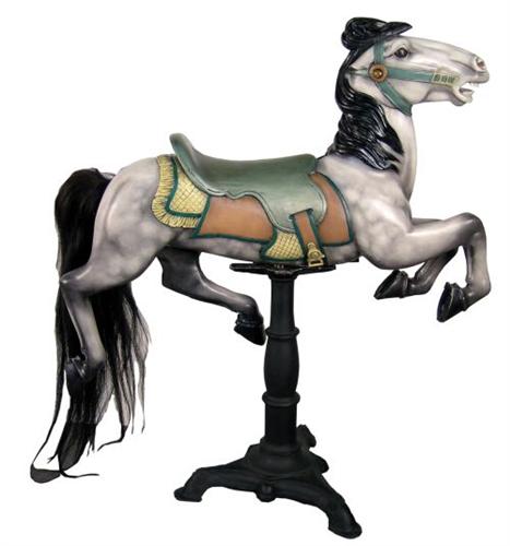 Carousel Horse on Rolling Stand Carved wood w real Horsehair Tail