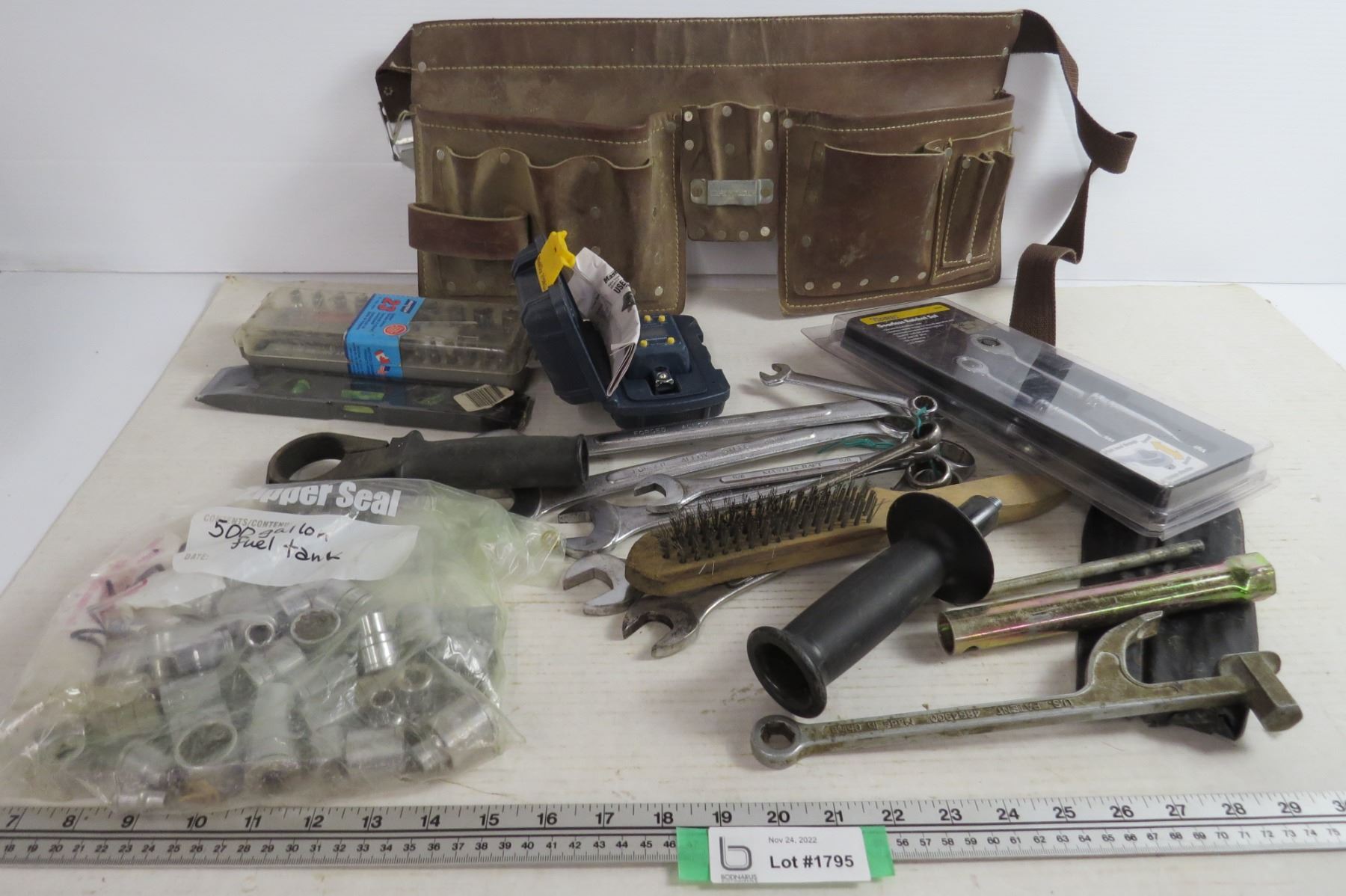 Carpenters Pouch - Digital Torque Adapter - Sm Level - Sockets - Gearless Ratchet Set - Wrenches - Misc Tools
