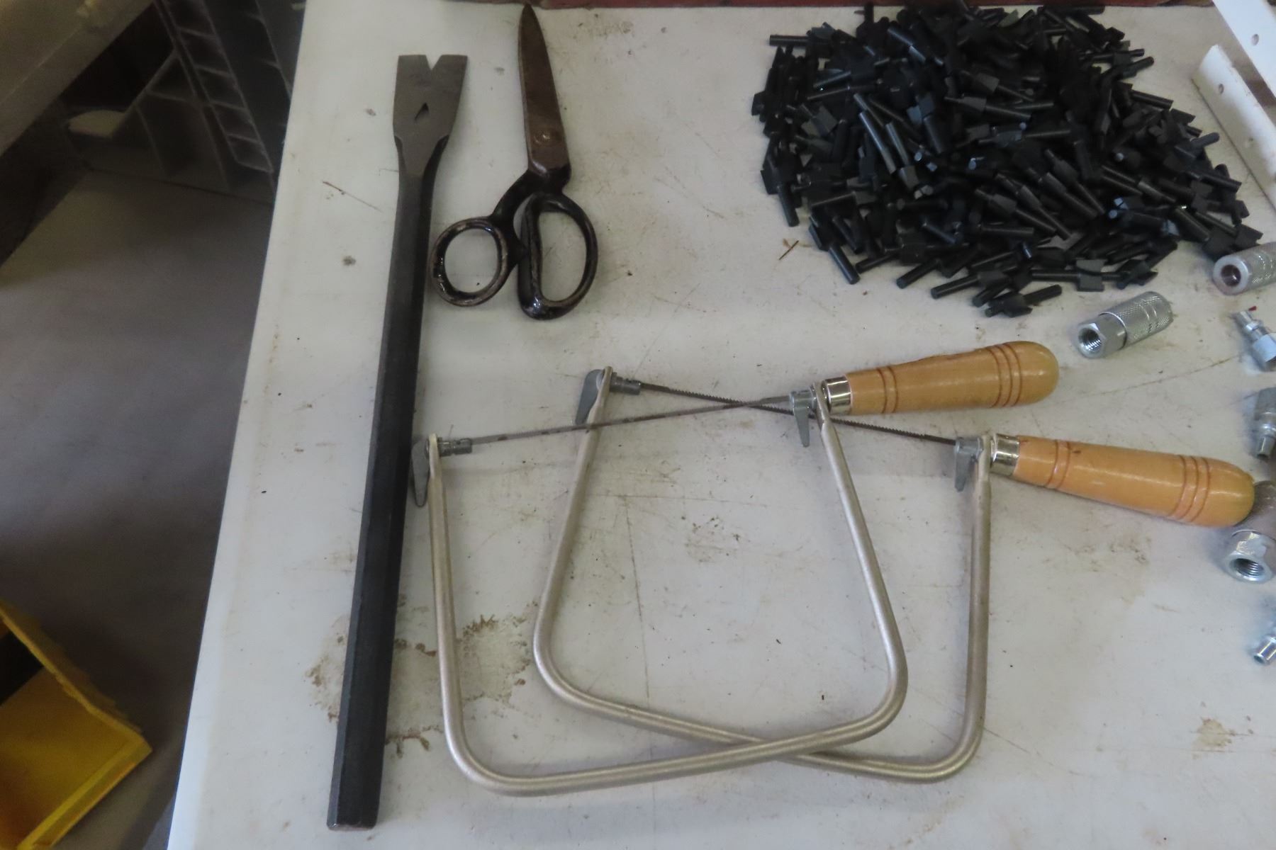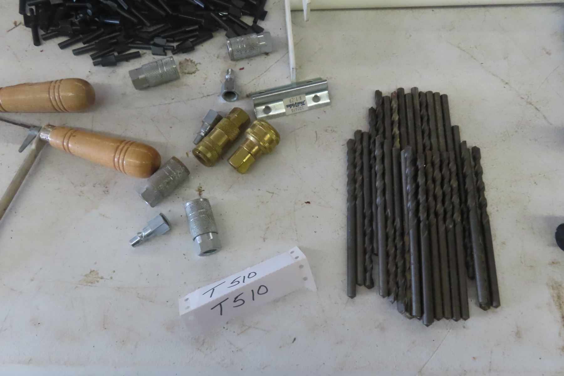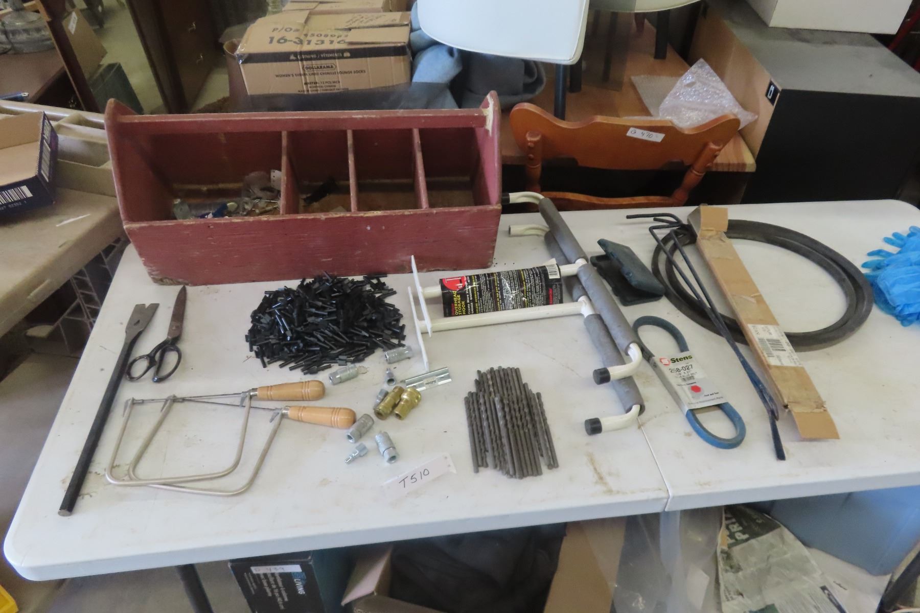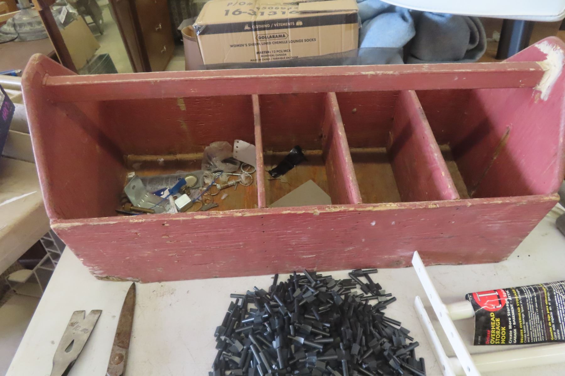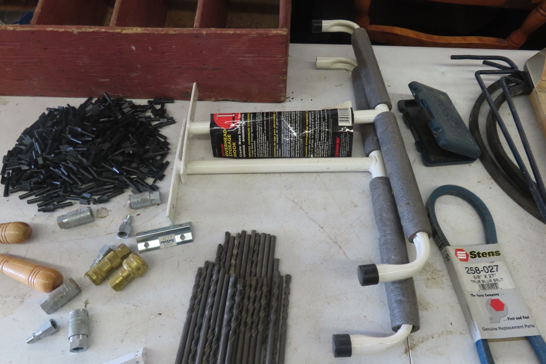 Carpenters Tool Box, Router Bits, Overhead Storage Hooks, Drill Bits, Belts