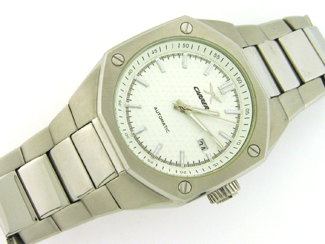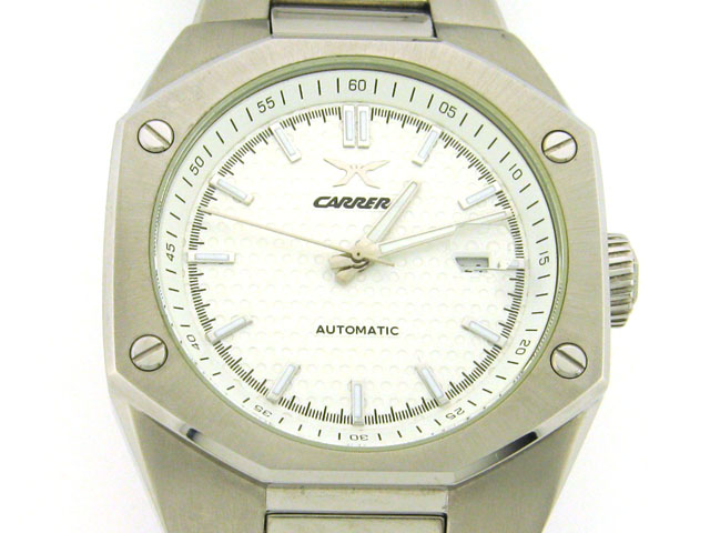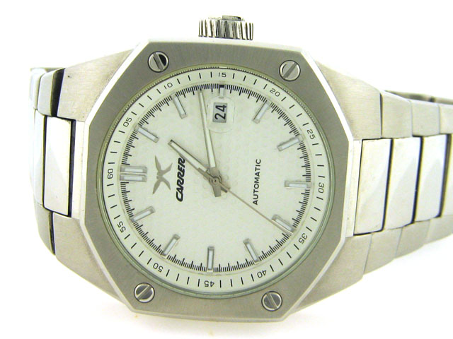 This is a Carrera Men's CW66491.403021 Sprint Automatic Stainless Steel Watch with the following features: automatic movement, 46-millimeter case, polished stainless steel case, bezel is with four screws, luminescent hands and numberless indexes, scratch-