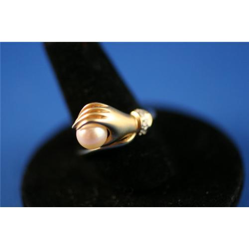 <table width="100%" border="0" cellspacing="0" cellpadding="4"><tr><td><em> Carrera e Carrera- Designer Treasure!</em></td></tr><tr> <td width="100%"> This is a lovely and classic Carrera e Carrera Designer ring from a recent estate. A graceful hand, crafted of matte 18K yellow gold hols a 6mm pink/cream pearl. There are tiny diamonds at the wrist, and the ring's shank is polished 18K yellow gold. This graceful ring weighs 2.3 grams and is a size 6.5 (sizable by me or by your jeweler). </td></tr><tr> <td> </td></tr><tr> <td>Reference #: R204</td></tr><tr><td>Condition:Excellent</td></tr><tr><td>Year:post 1950</td></tr><tr><td>Height:.5</td></tr><tr><td>Width:.6</td></tr><tr><td>Title:Carrera e Carrera 18K Diamond and Pearl Hand</td></tr><tr><td>Materials:18K yellow gold, pearl, diamonds</td></tr><tr><td>Type:hand</td></tr><tr><td>Location:Minneapolis, Minnesota</td></tr></table>