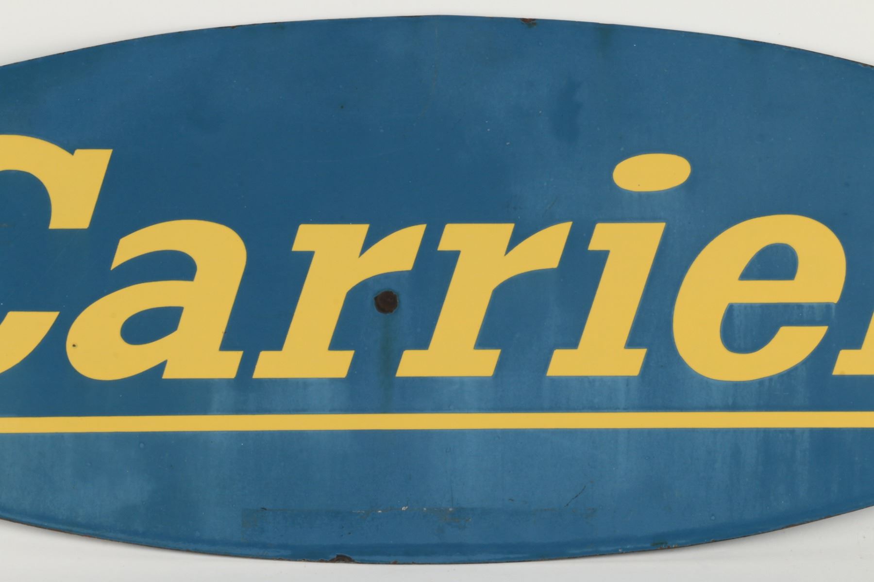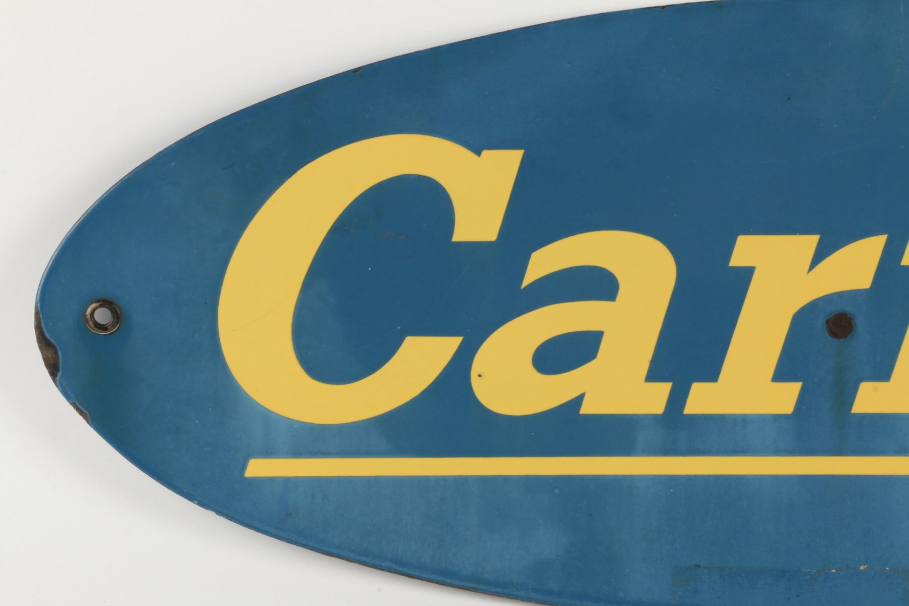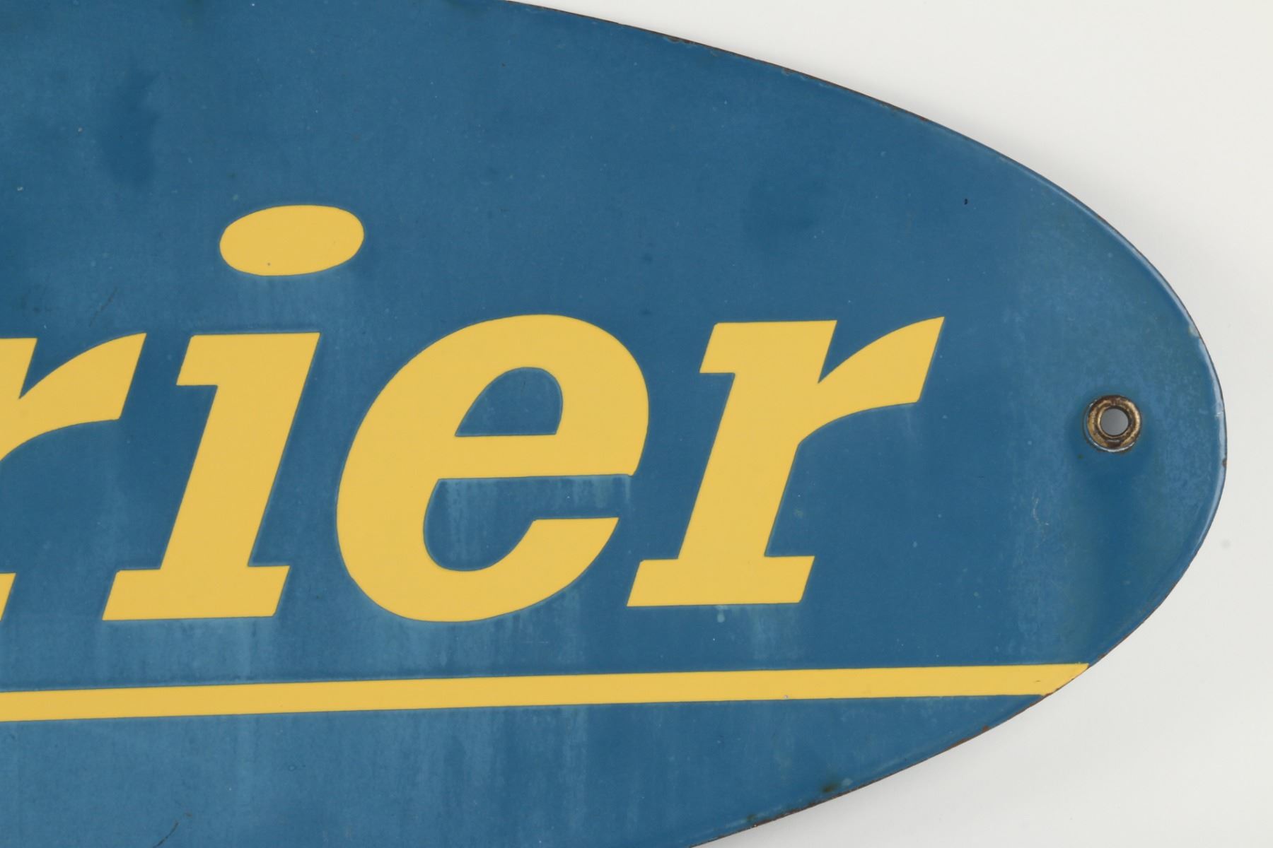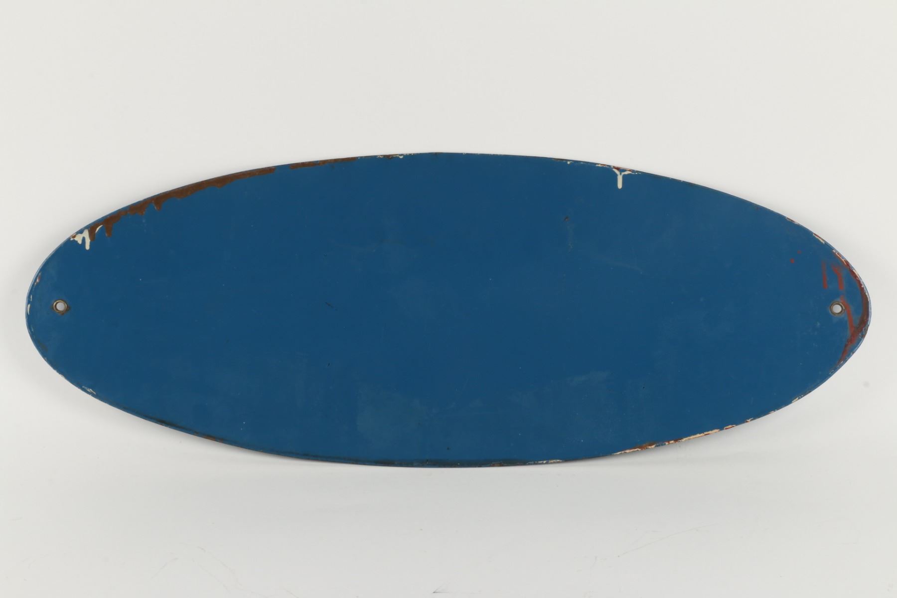 Circa 1950. Single-sided porcelain. 25" x 9.5". Two original mounting grommets in place. One central porcelain chip. Surface is chalky. $100-200.
