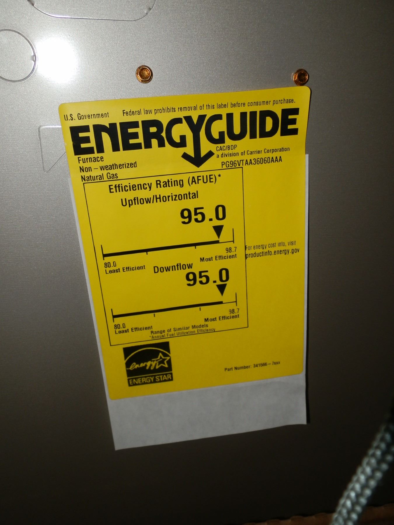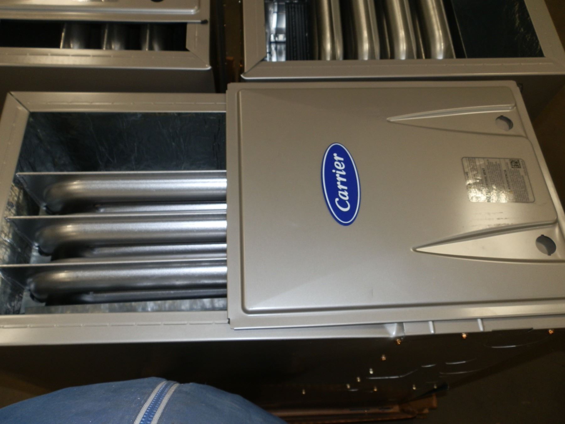 Carrier Furnace 60,000 btu, has small dent as seen in the photos, and missing the plastic knobs...Freight Claim...New