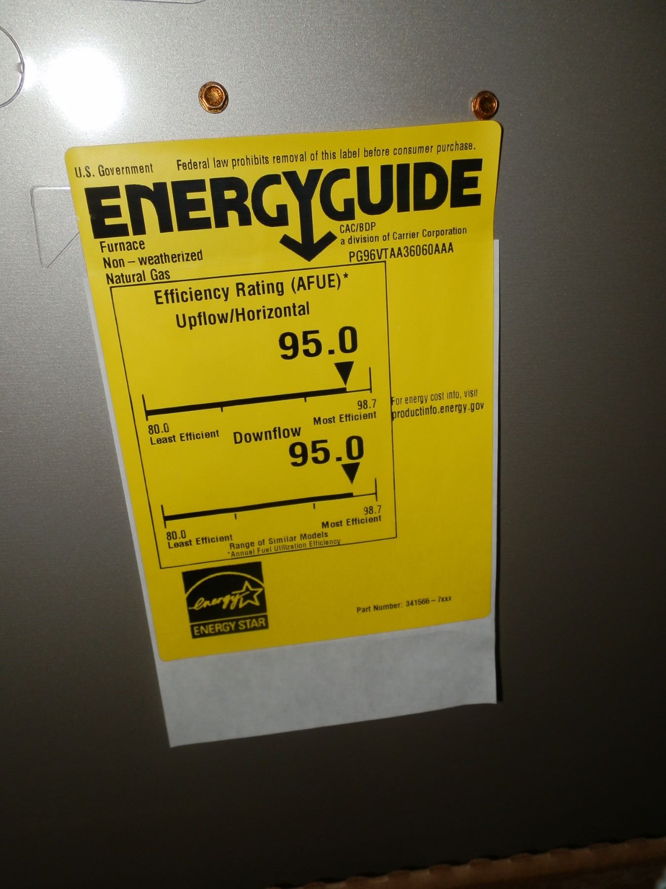 Carrier Furnace 60,000 btu, has small dent as seen in the photos, and missing the plastic knobs...Freight Claim...New