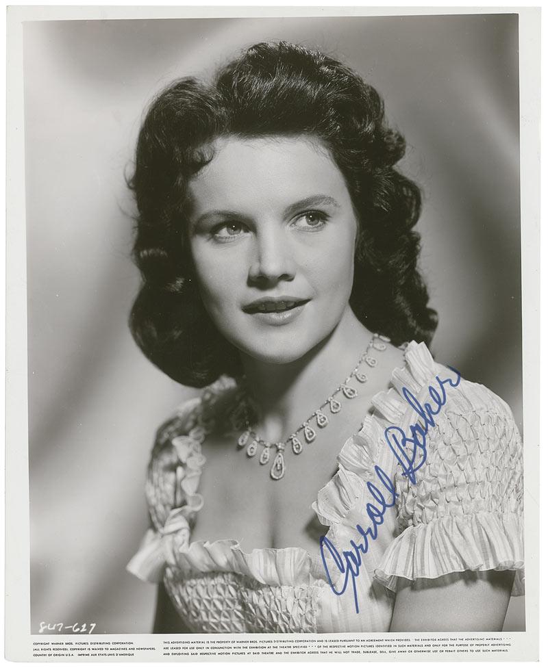 Attractive glossy 8 x 10 Warner Bros. publicity photo of Baker for The Miracle, signed in blue felt tip. In fine condition, with a couple light bends.