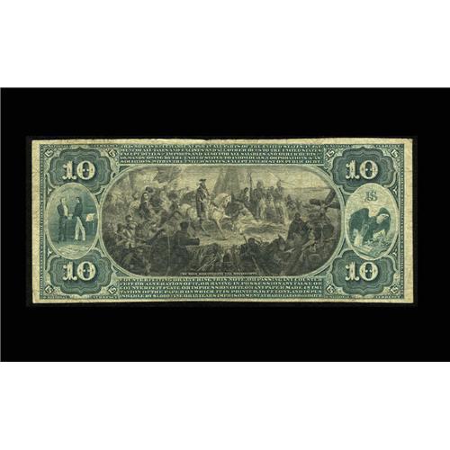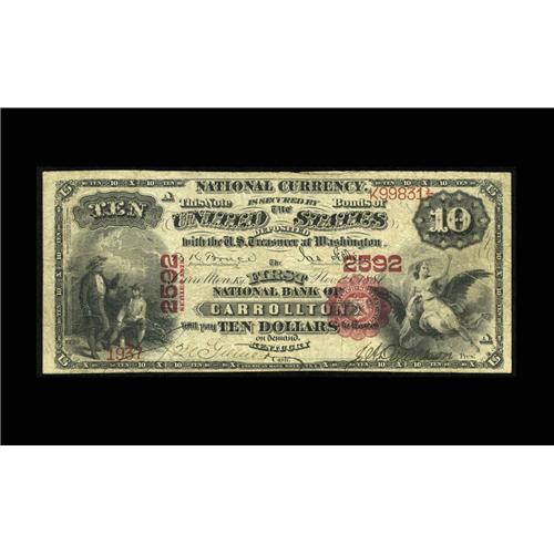 <B>Carrollton, KY</B></I> - $10 1875 Fr. 420 <B>The First NB</B></I> Ch. # 2592<BR>A just plain rare type and denomination from any Kentucky bank, with the census standing at fewer than two dozen examples known from all banks in the state combined. This is an attractive piece, with excellent color, good paper quality, and strong pen signatures. Bright <B>Fine+++,</B></I> with a couple of pinholes that barely detract.