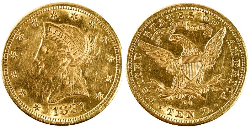 Carson City,NV - Ormsby County - 1881 - Carson City US Coin $10 Gold :
