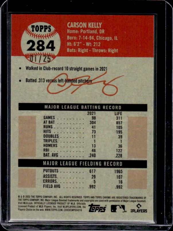 Carson Kelly Orange Wave Refractor /25 2022 Topps Chrome #284