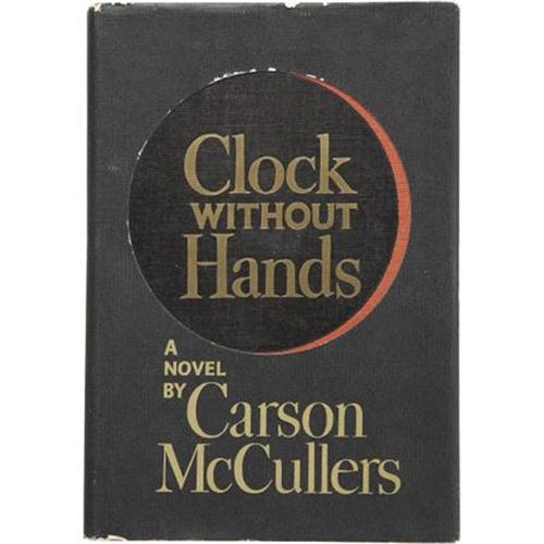 <B>Carson McCullers. </B></I><B><I>Clock Without Hands</B></I></B></I><B>.</B></I> Boston: Houghton Mifflin Company, 1961.<BR> <BR>First edition. Octavo. 241 pages.<BR><BR>Original red cloth with titles stamped in gilt on a black circle on the front board and stamped in gilt on the spine. Light shelf wear. Gift inscription of the front pastedown. Contents sound. Dust jacket with some wear mainly at the edges. Very good.<BR><BR><BR><b>Shipping:</b> Books & Catalogs (<a target="_blank" href="http://www.heritageauctions.com/common/shipping.php">view shipping information</a>)
