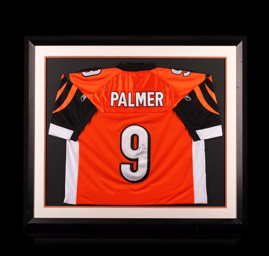 Carson Palmer Framed Autographed Jersey. Comes with Certificate of Authenticity.