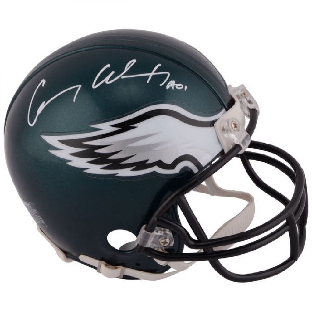 Riddell Eagles mini helmet. Hand-signed and inscribed in silver paint pen by Carson Wentz.