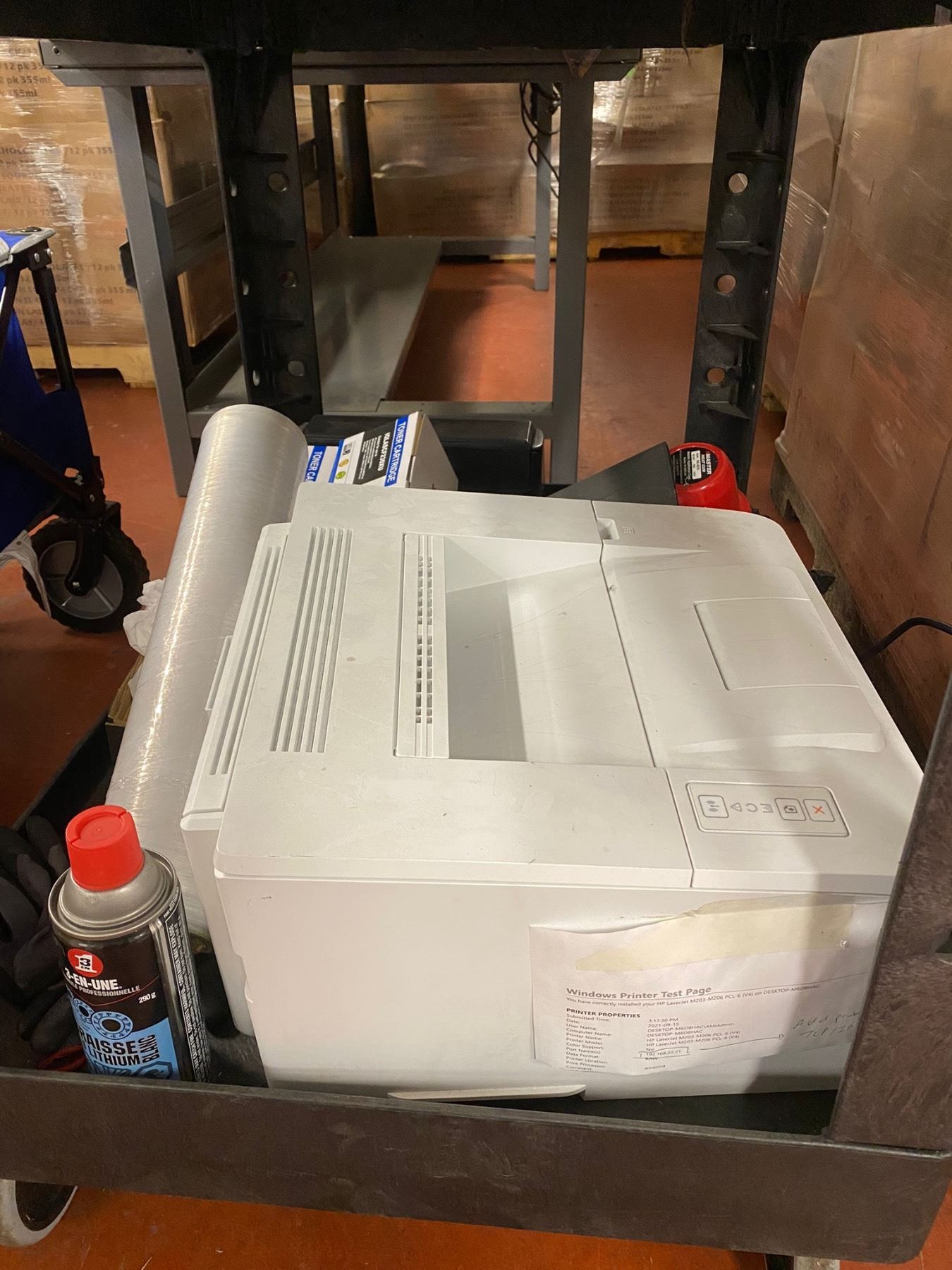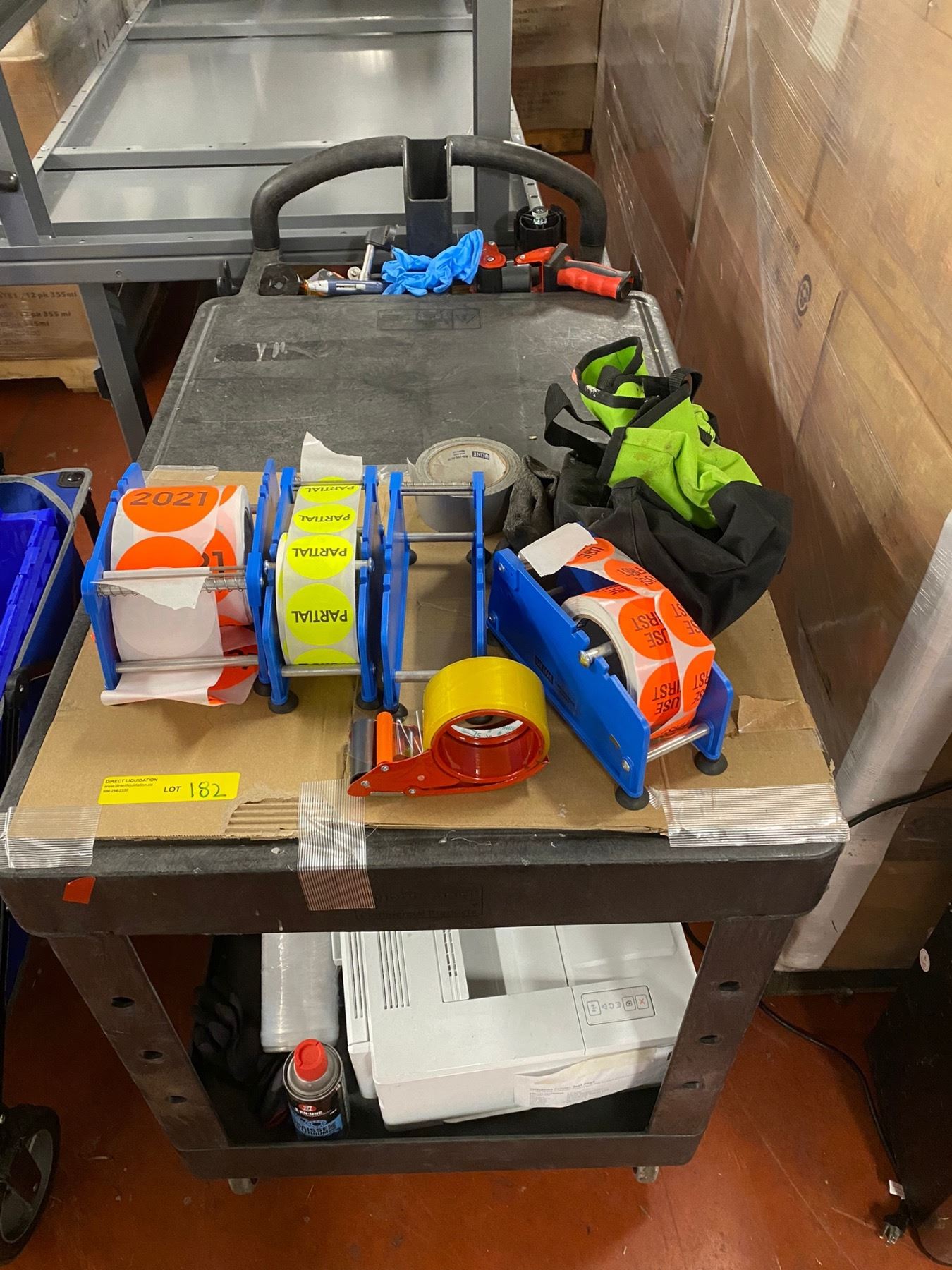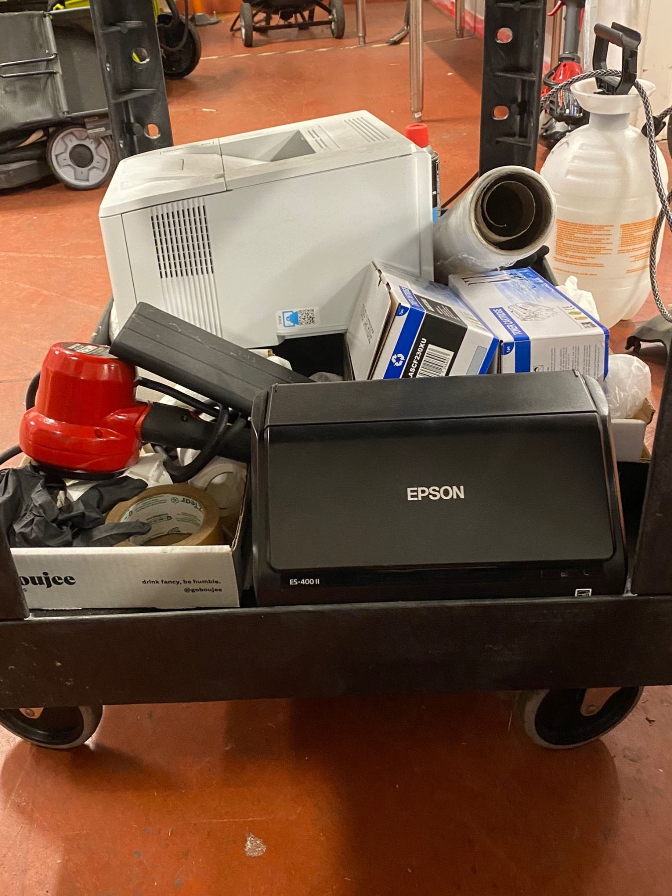 Cart w/contents - includes HO Laserjet/Master Heat Gun/Epson Printer/Uline label dispenser etc