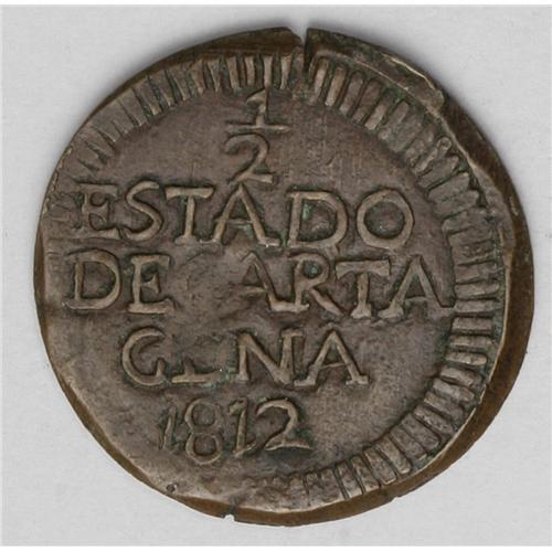 <B>Cartagena-Republican 1/2 Real - Trio, </B></I>KM-D2, three examples of this crude copper coinage struck during the siege of the city by Royalist forces including: No Date, brown XF, 1812, choice VF-XF, extremely strong strike, and 1813, XF, full date.