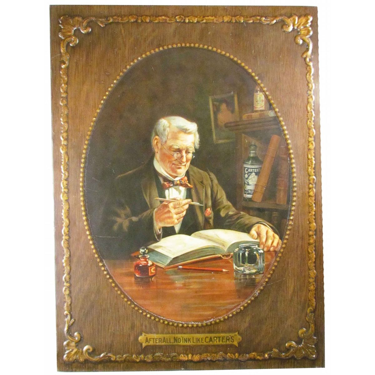Carter's Inks Self Framed Embossed Tin Sign. Entitle, "After All No Ink Like Carter's". A few touch ups otherwise very good condition. 18 1/2 X 25 inches.