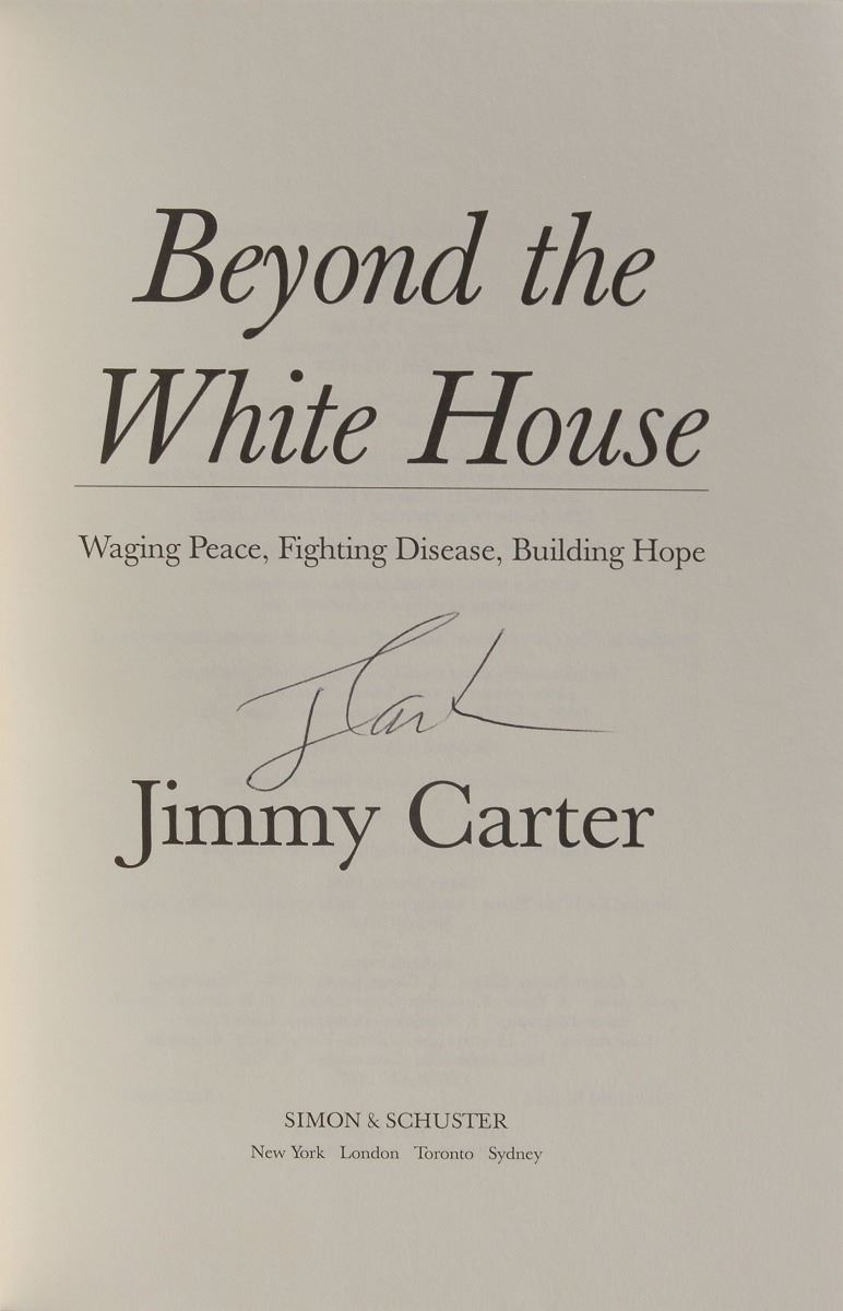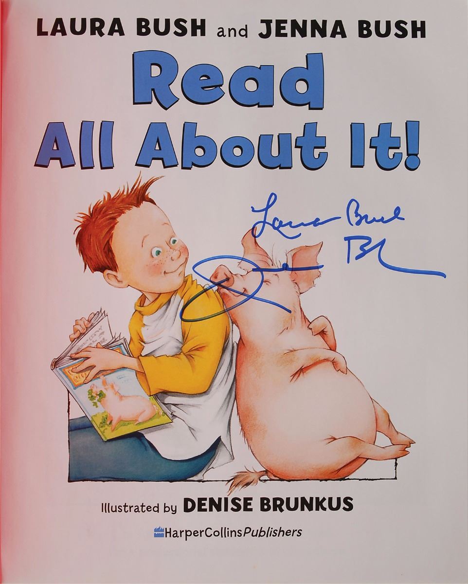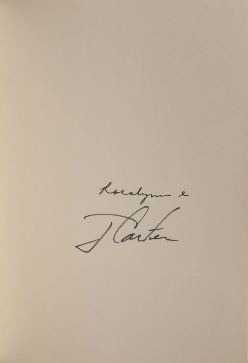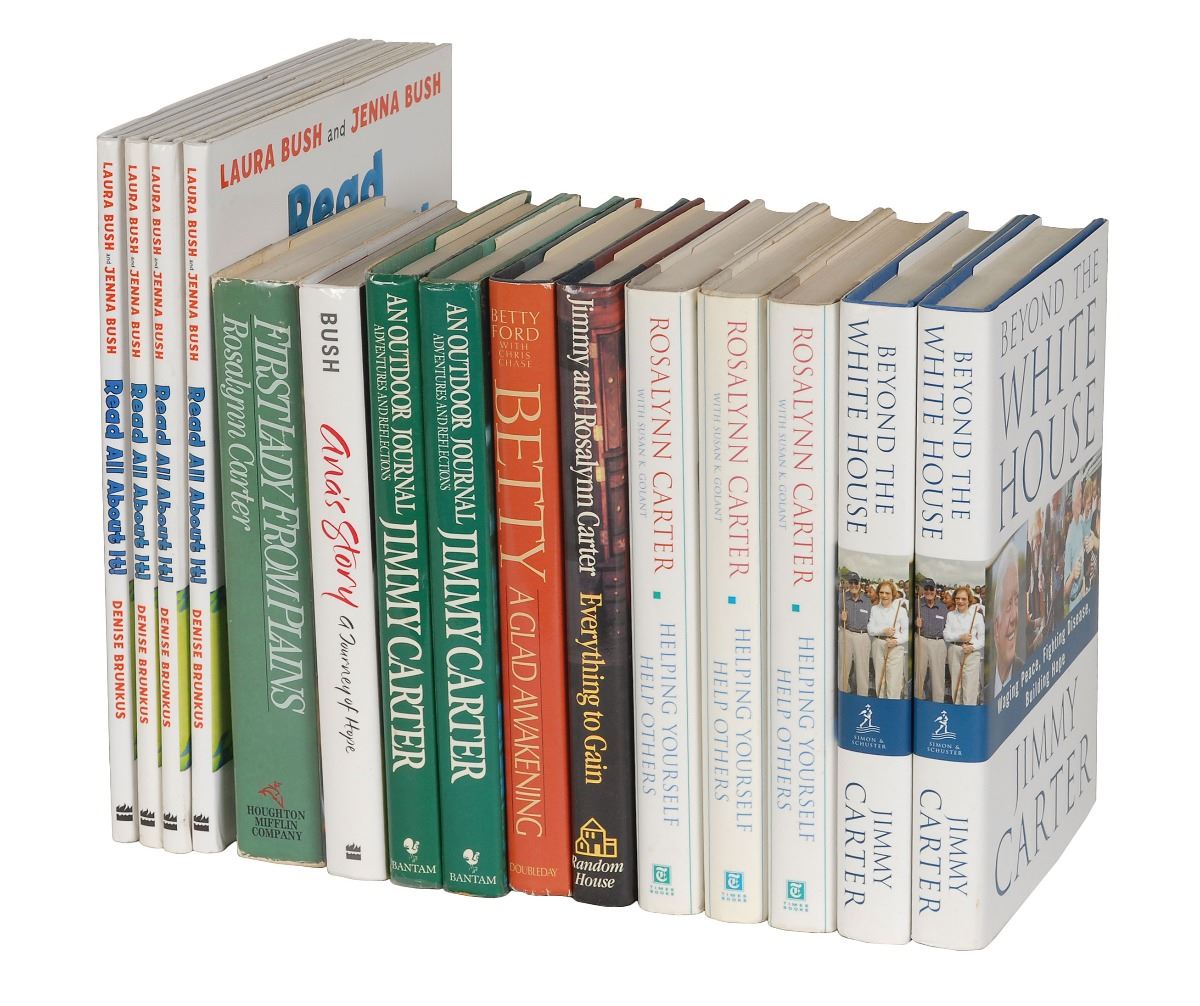 Grouping of 15 books, all hardcovers with dust jackets, each signed by one or more members of a presidential family, including: a first edition of Everything to Gain, signed by Jimmy and Rosalynn Carter; two first editions of An Outdoor Journal, signed by Jimmy Carter; two first editions of Beyond the White House, signed by Jimmy Carter; three copies of Helping Yourself Help Others, signed by Rosalynn Carter; a first edition of First Lady from Plains, signed by Rosalynn Carter; a copy of Betty: A Glad Awakening, signed by Betty Ford; a first edition of Ana’s Story, signed by Jenna Bush; and four first editions of Read All About It! with three signed by Laura and Jenna Bush, and one signed by the former first lady. In overall fine condition.