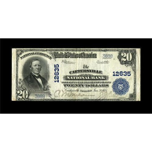<B>Cartersville, GA</B></I> - $20 1902 Plain Back Fr. 661 <B>The Cartersville NB</B></I> Ch. # 12635<BR> Large notes only from this short lived bank, which went out in July of 1929 after barely four years in business. This is one of only four examples that have been offered at public auction since 1999. <B>Very Fine.</B></I> <BR><BR><b>Shipping:</b> Coins & Currency (<a target="_blank" href="http://www.heritageauctions.com/common/shipping.php">view shipping information</a>)