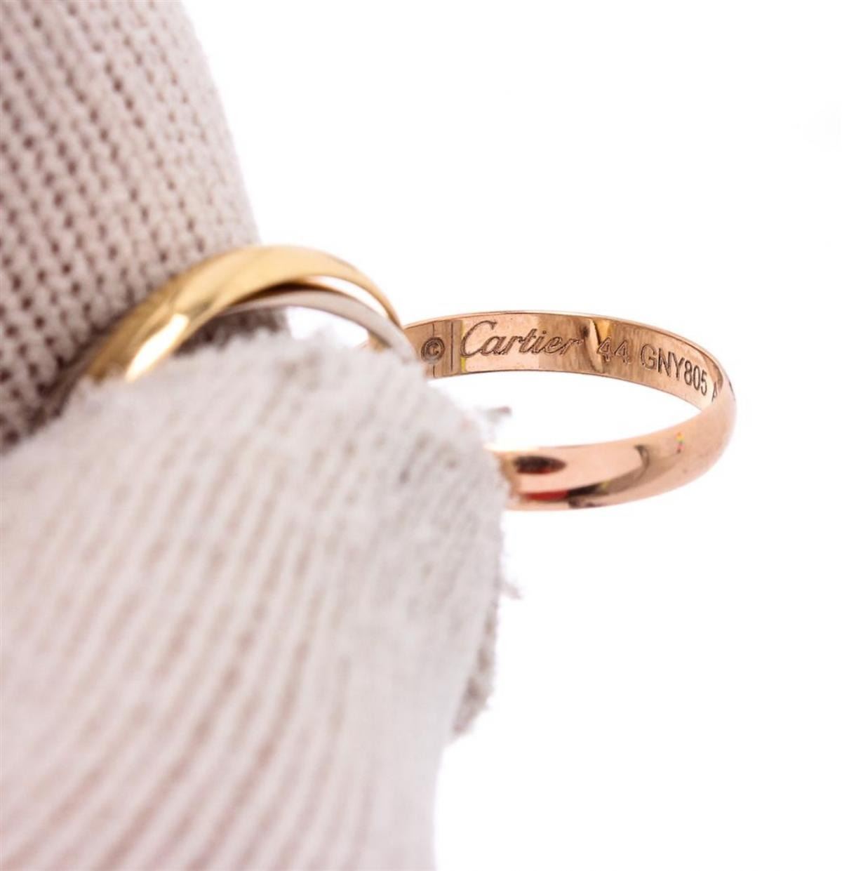 18K yellow, white and rose gold Cartier Trinity de Cartier Classic rolling ring. Designer size 44