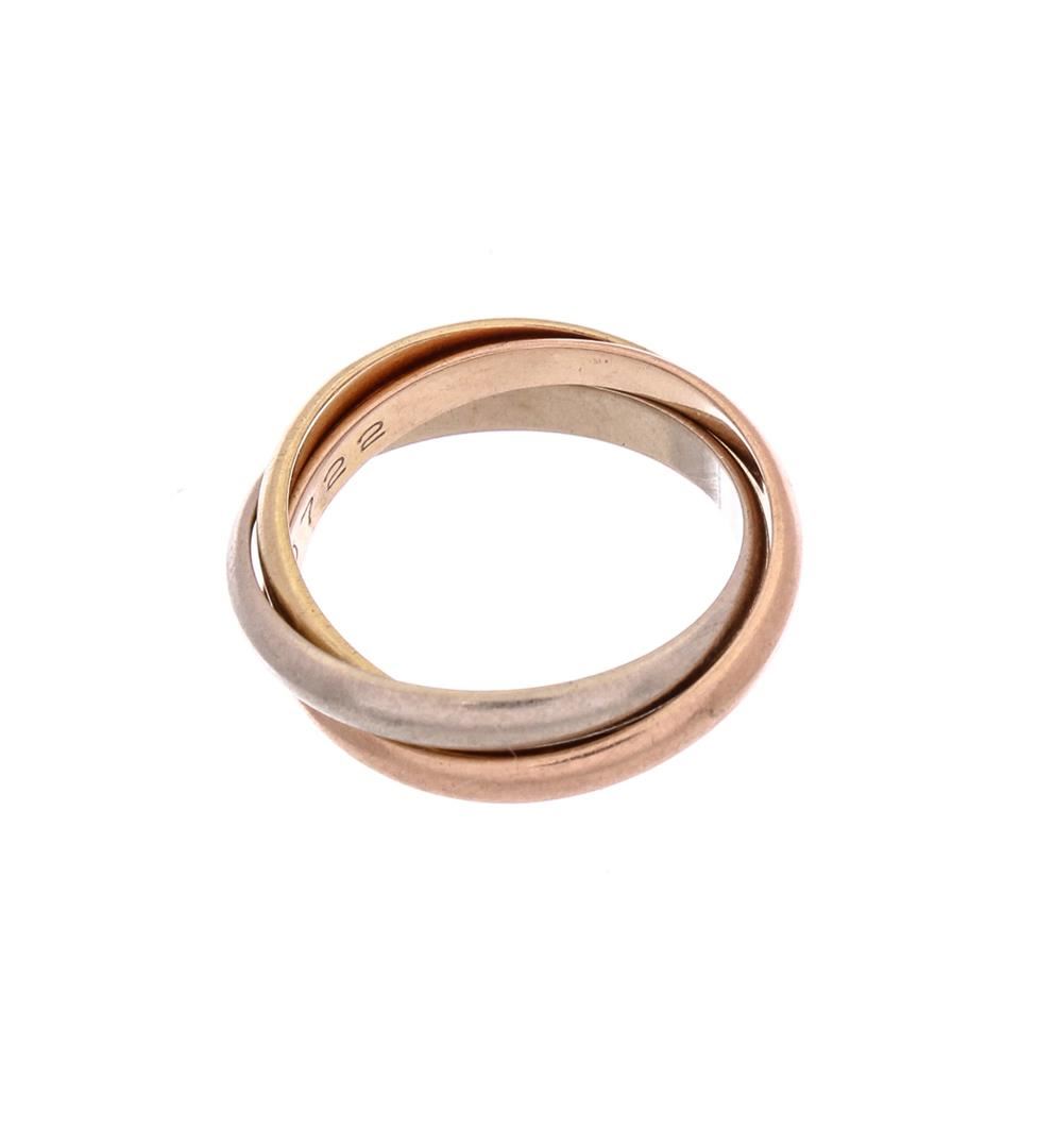 18K yellow, white and rose gold Cartier small trinity ring. Designer Size:49- Size 4.75