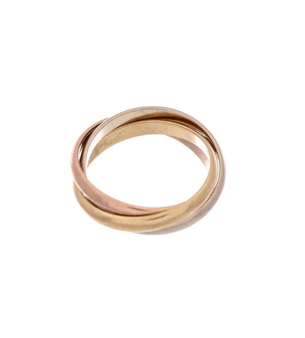 18K yellow, white and rose gold Cartier small trinity ring. Designer Size:49- Size 4.75