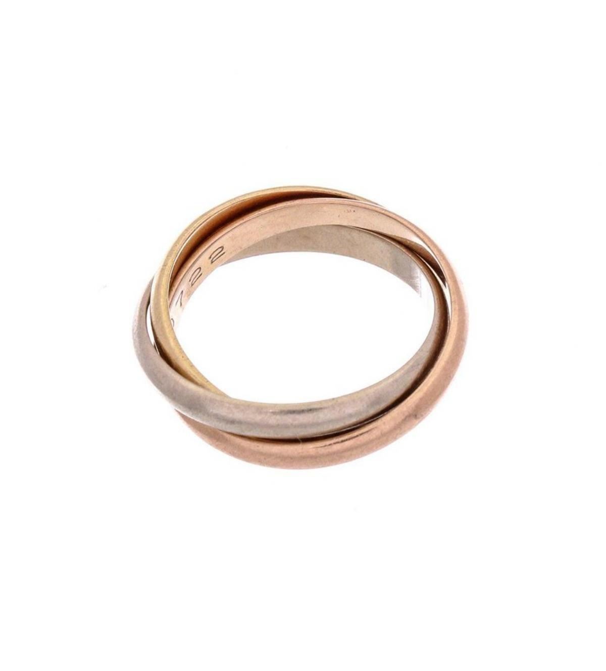 18K yellow, white and rose gold Cartier small trinity ring. Designer Size:49- Size 4.75 Measurements: Length: 1 in / 3 cm Width: 1 in / 3 cm 1 in / 3 cmCONDITION: Pre-Owned Good overall, please see photographs for detail.