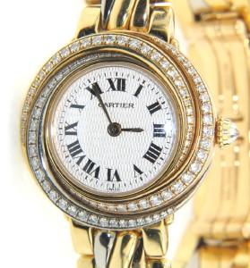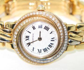 Brand New Cartier 18K Yellow Gold Trinity Diamond Watch With Box.Watch's Weight : 86.2 grams.The total diamond weight: 1.2 cts. H color, VS clarity.inverted Diamond crown.Swiss quartz movement.Sapphire crystal.The length of watch: 6" , 11 mm wide.Swiss made.Water resistant