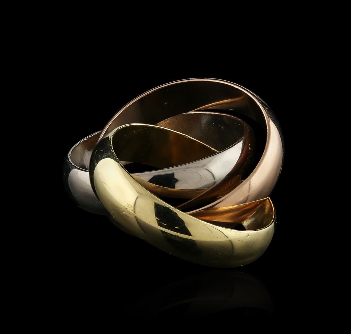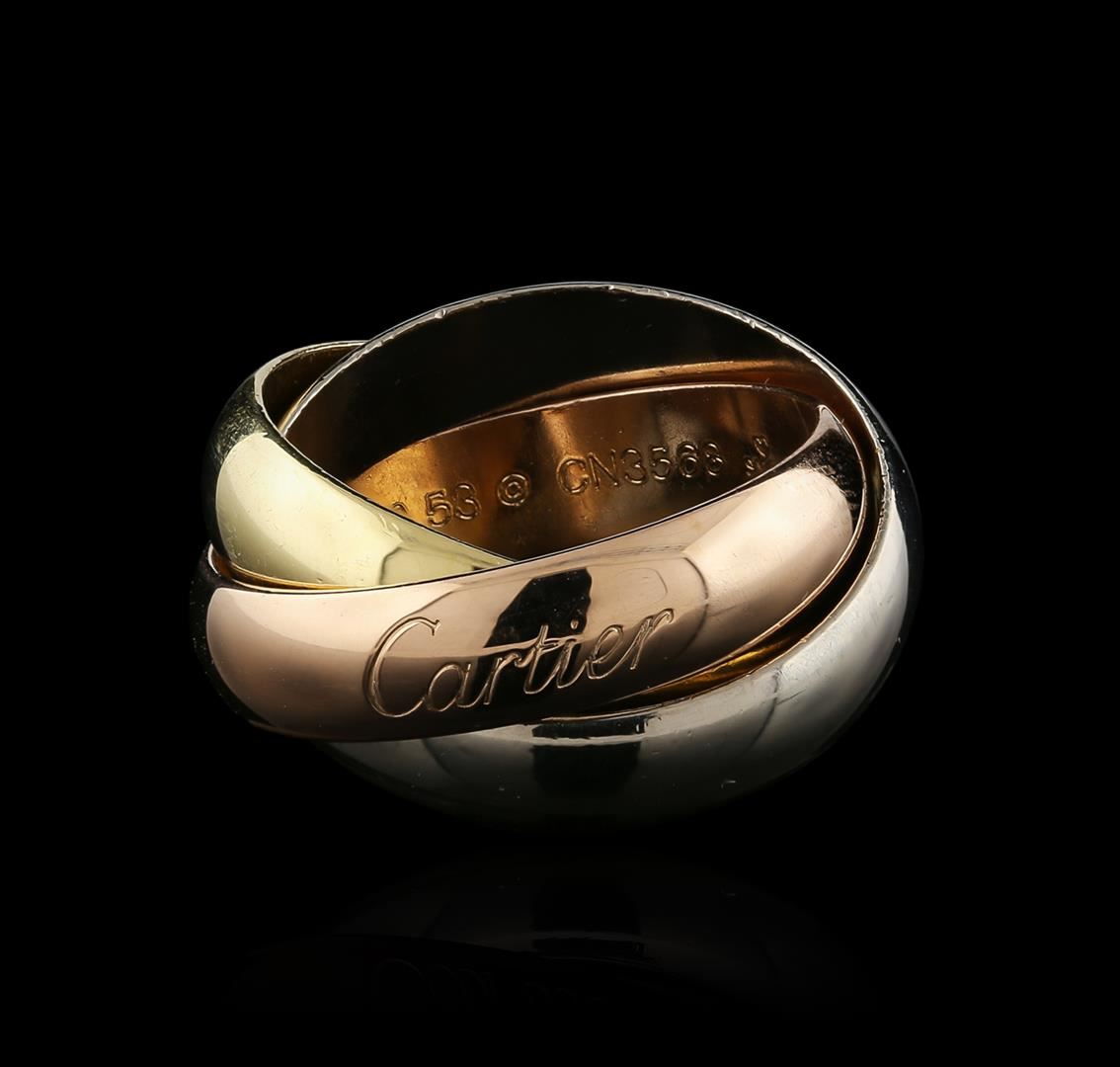 One Cartier trinity ring featuring: 18KT white, yellow, and rose gold weighing 15.93 grams.
