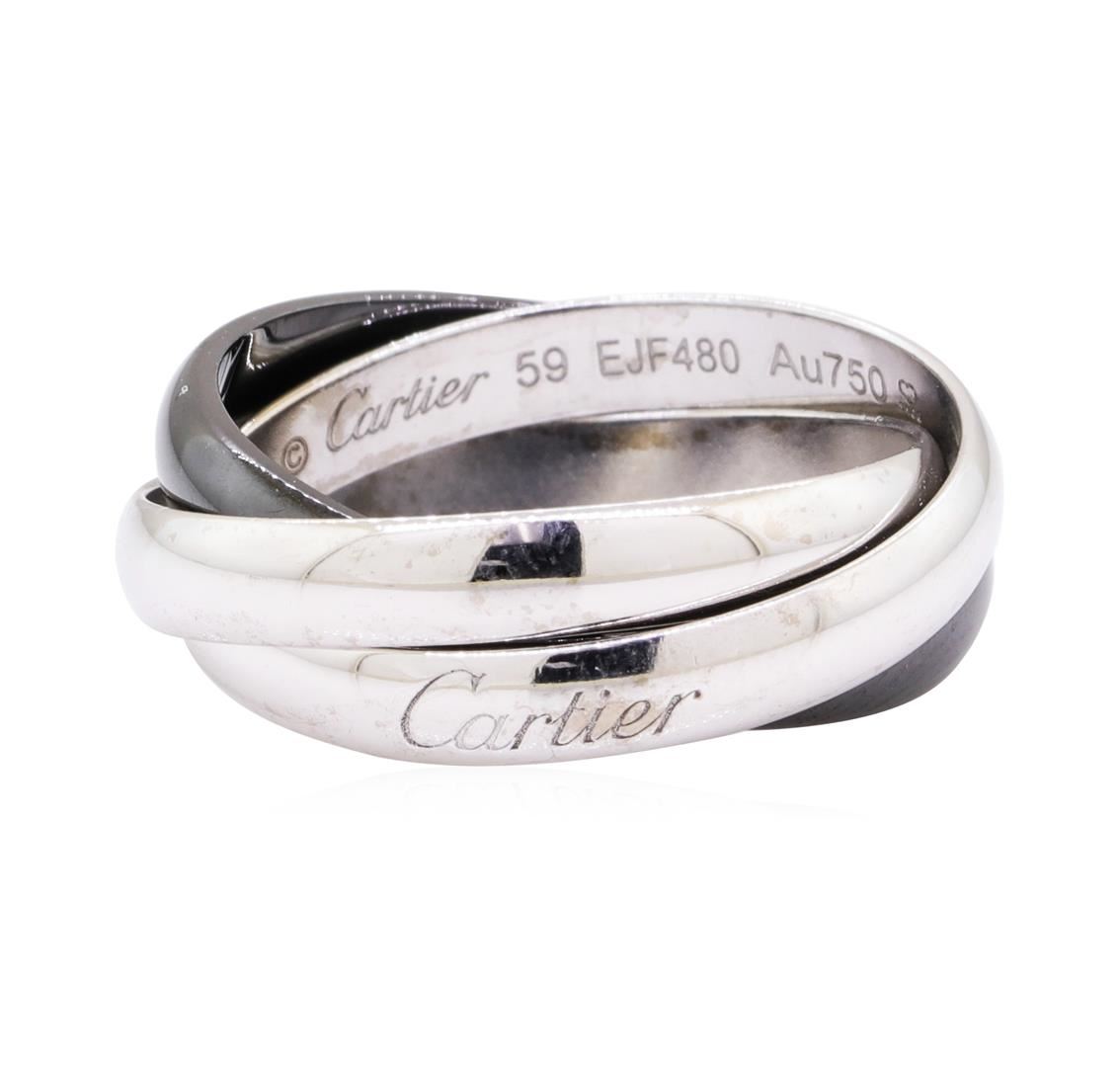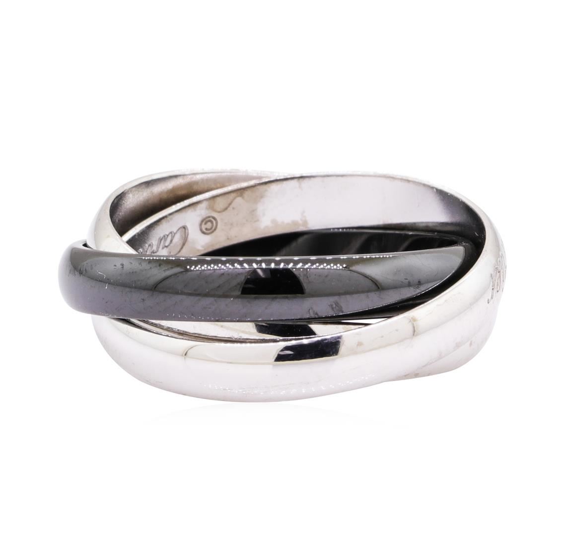 One Cartier rolling ring featuring: 18KT white gold and black ceramic weighing 7.8 grams. The ring is a size 9.