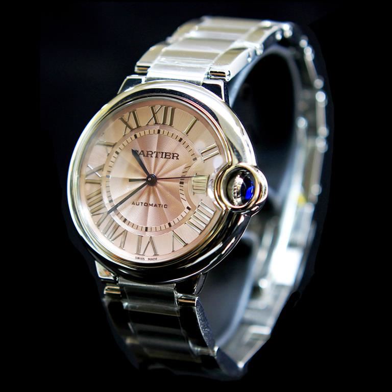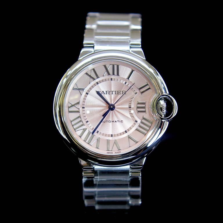 ****** Cartier Ballon Bleu 33mm Womens Wristwatch ****** One Womens Pink Dial electrolically tested and polished. Case: Solid / SS 33mm / Bezel: / Dial: Pink Roman Numeral / Bracelet: SS standard clasp / Condition: New with papers /