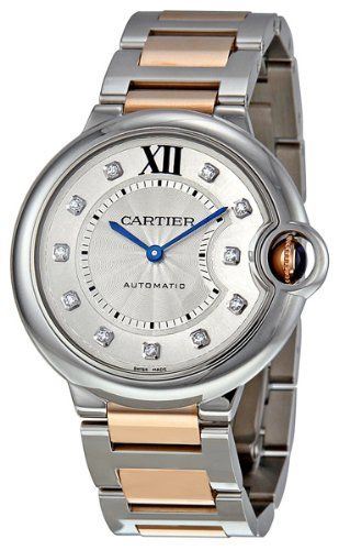 Model: WE902031 - CASE = [Material:Polished Stainless Steel], [Case Diameter:36.6], [Case Thickness:12.05mm], [Bezel:Fixed], [Case Back:Solid], [Water Resistant:30 Meters - 100 Feet], [Crystal:Scratch Resistant Sapphire], DIAL = [Color:Silver with Diamond Hour Markers], MOVEMENT = [Type:Automatic Self Winding], [Crown:18K Rose Gold Set With Blue Sapphire], BAND = [Clasp:Hidden Folding Clasp], [Type:18kt Rose Gold with Stainless Steel Polished], (In Stock - Ready to ship.)