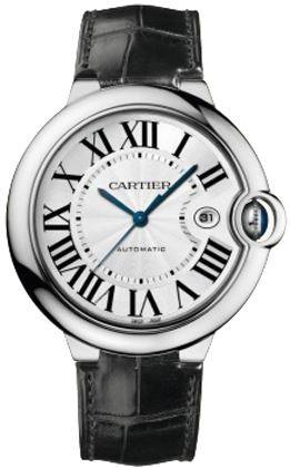 Model: W69016Z4 - CASE = [Material:Polished Stainless Steel], [Case Diameter:42.1], [Case Thickness:13mm], [Bezel:Fixed], [Case Back:Solid], [Water Resistant:30 Meters / 100 Feet], [Crystal:Scratch Resistant Sapphire], DIAL = [Color:Silver Opaline with Roman Numerals], MOVEMENT = [Type:Calibre 049 Automatic Self Winding], [Crown:Fluted Set with Synthetic Cabochon-Shaped Spinel], BAND = [Clasp:Deployment Buckle], [Type:Black Crocodile Leather], (In Stock - Ready to ship.)