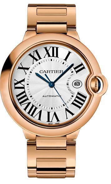 Model: W69006Z2 - CASE = [Material:Polished 18K Rose Gold], [Case Diameter:42], [Bezel:Fixed Polished], [Case Back:Solid], [Water Resistant:30 Meters / 100 Feet], [Crystal:Scratch Resistant Sapphire], DIAL = [Color:Silver Opaline with Roman Numerals], MOVEMENT = [Type:Calibre 049 Automatic Self Winding], [Crown:Fluted Gold Set with Blue Sapphire Cabochon], BAND = [Clasp:18k Rose Gold Hidden Folding Buckle], [Type:Polished 18K Rose Gold], (Usually ships in 1 to 2 business days.)