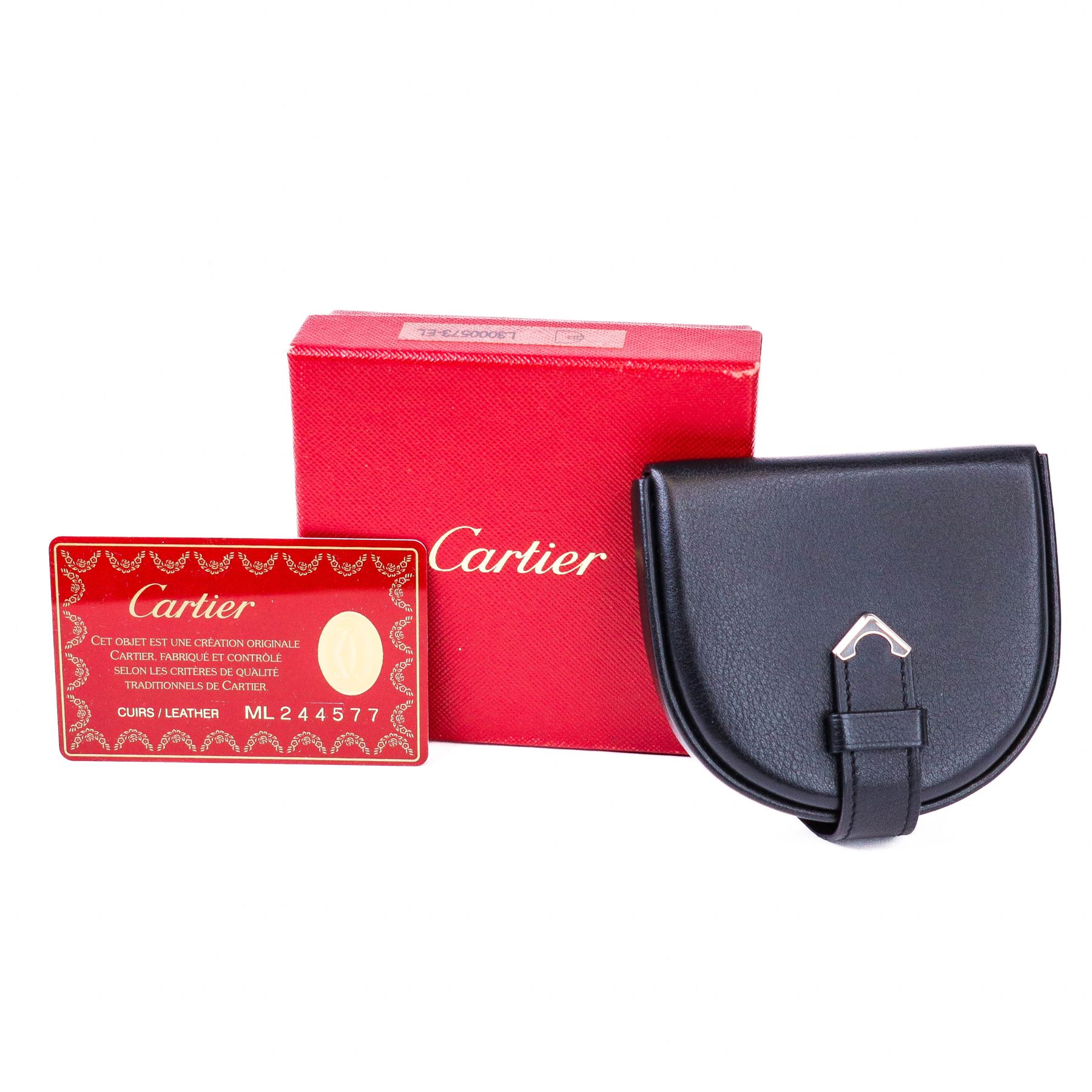 Authentic and Elegant Cartier coin case in smooth black leather